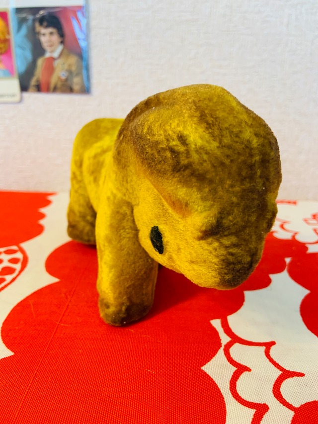 毛むくじゃらの黄色いワンちゃんです ソ連時代の1970~80年代生まれ ラトビアから日本に来ました 造形や首輪よりソ連時代のベラルーシにあったゴメリおもちゃ工場生まれと思われます 圧倒的な毛の量でかき分けないとお顔が見えません ぼんやりした目が可愛いです レトロな首輪をしています 首はおそらく360度回ります(半周ほどは確認しました) カールした毛並みはナイロン系かやや硬めです ■ およそのサイズ 体を伸ばして顔から足の先:40cm 高さ :23cm ■ 購入国 : ラトビア ■ 単品送料 :宅急便80サイズ / 定形外郵便 1kgサイズ ■ 状態 : 大きなほつれは無いです ビンテージ品につき小さなほつれ、よごれ、スレ、生地の一部が薄いなどが見られる事があります。 写真でご確認頂いた上でビンテージ品の風味をご理解頂いた上でご購入下さい。 写真の装飾品・缶などぬいぐるみ以外のアイテムは付きません、サイズの目安として使用しています ご不明な点など御座いました際はコンタクト等でご連絡下さい。