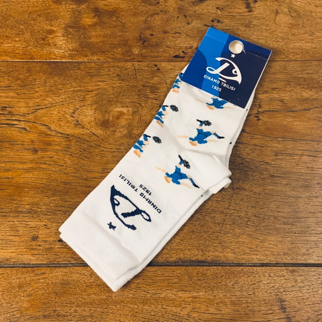 カスピ海と黒海の間、コーカサス地方。 その国の一つジョージアのサッカーリーグの強豪、ディナモ・トビリシ。 1925年に創設され、首都トビリシの中央にある5万人以上入るスタジアムがホームのチームです。 ソ連当時は全土のリーグでも優勝する他、欧州タイトルにも輝き古くから強豪として知られています。 そしてジョージア独立後の国内リーグでは10連覇も達成しています。 そんなジョージアのトップチーム、ディナモ・トビリシの公式アイテムの靴下です。 サイズは男女兼用。 ワンサイズでの提供となります。 ■ サイズ : ショート丈 足裏フリー (およそ23~27cm) ■ 材質 : 綿 84%・ポリアミド 15%・エラスタン 1% ■ 製造国 : ジョージア ■ 単品送料 : クリックポスト / レターパックライト ■ 状態 : 新品 繊維製品の為サイズ表記から1〜2cm程度前後する場合、しわ等ある場合も御座いますが許容の範囲内として販売しております。 ご利用環境やモニターの種類によっては、カラー・素材の見え方が 実際の種類と異なる場合が御座います。