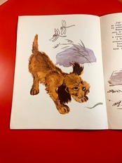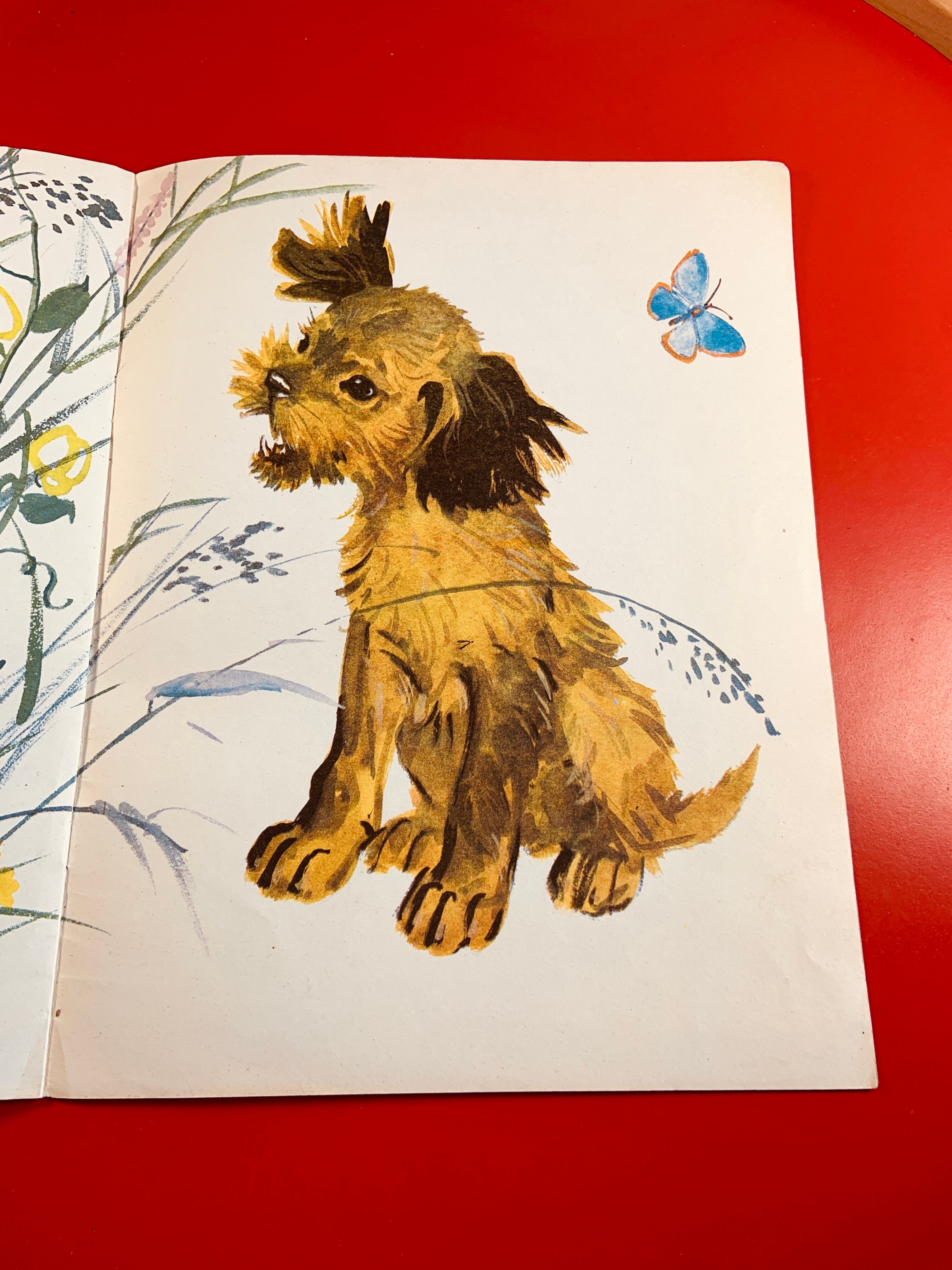 野原で子犬は、様々な動物や昆虫たちに出会います。