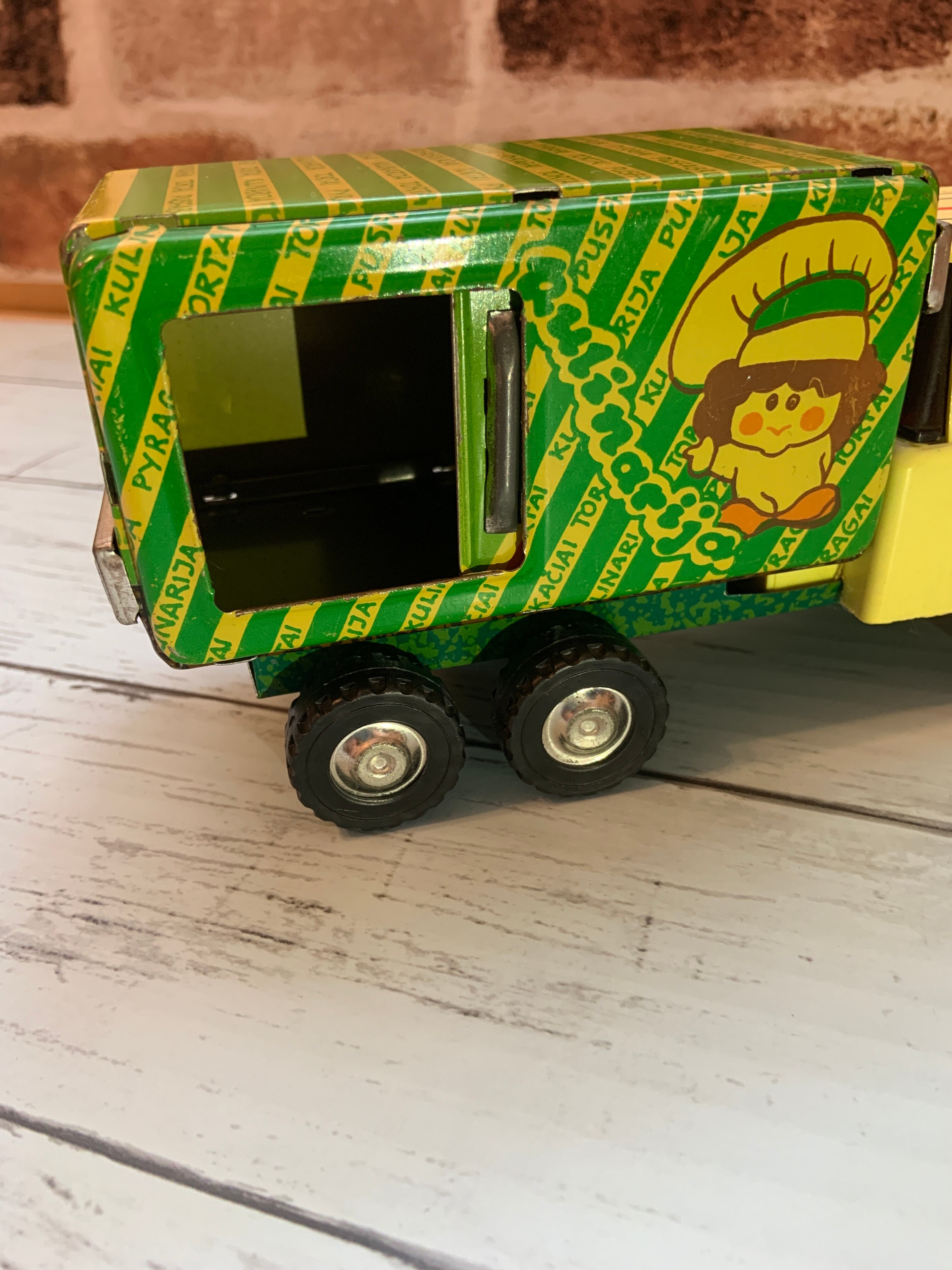 ブリキ製 キッチンカー リトアニア製 お菓子売りのトラック レトロなイラスト