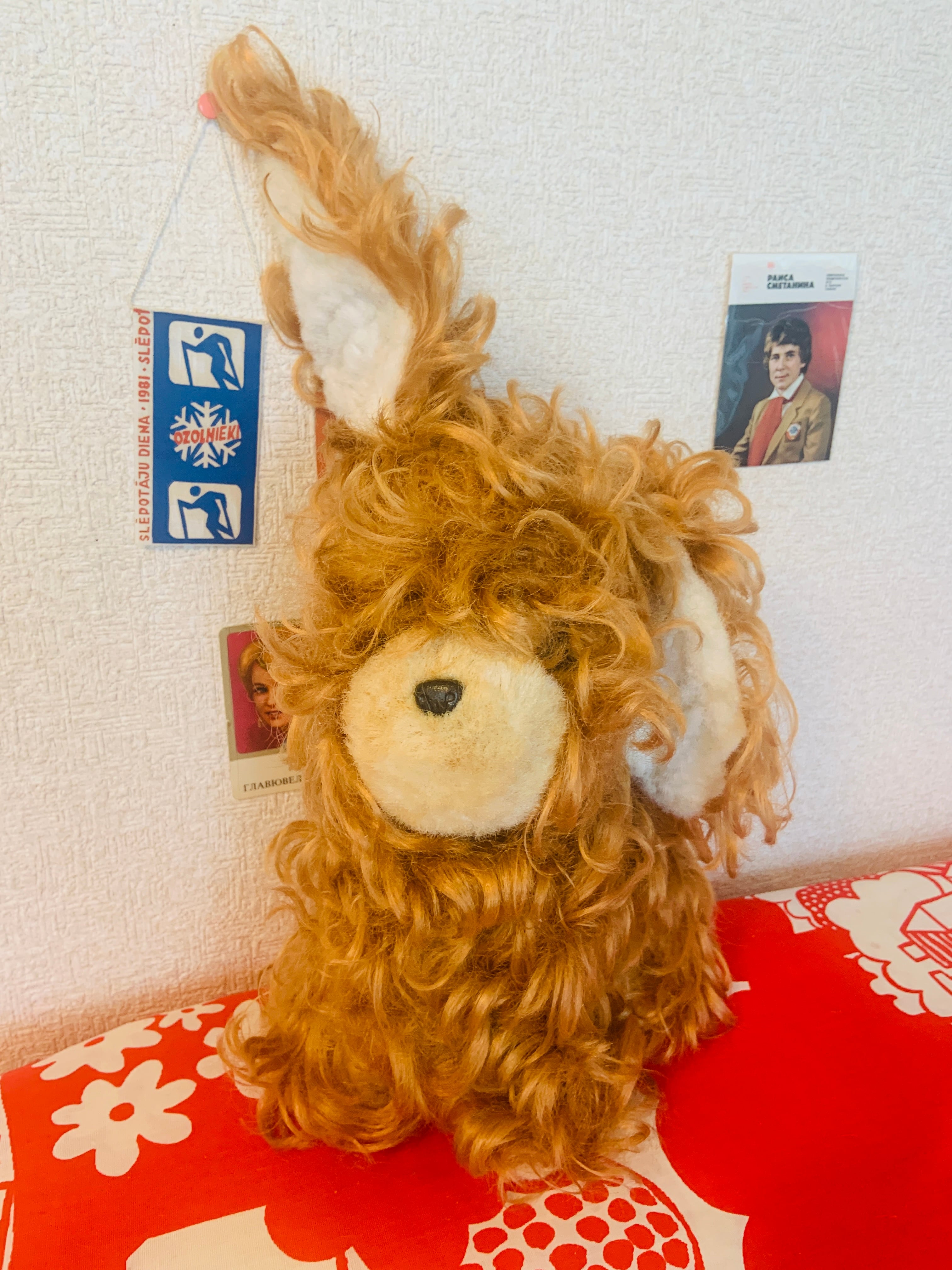 モフモフ犬のぬいぐるみ(中) ラトビア 毛が多くてお顔が隠れる