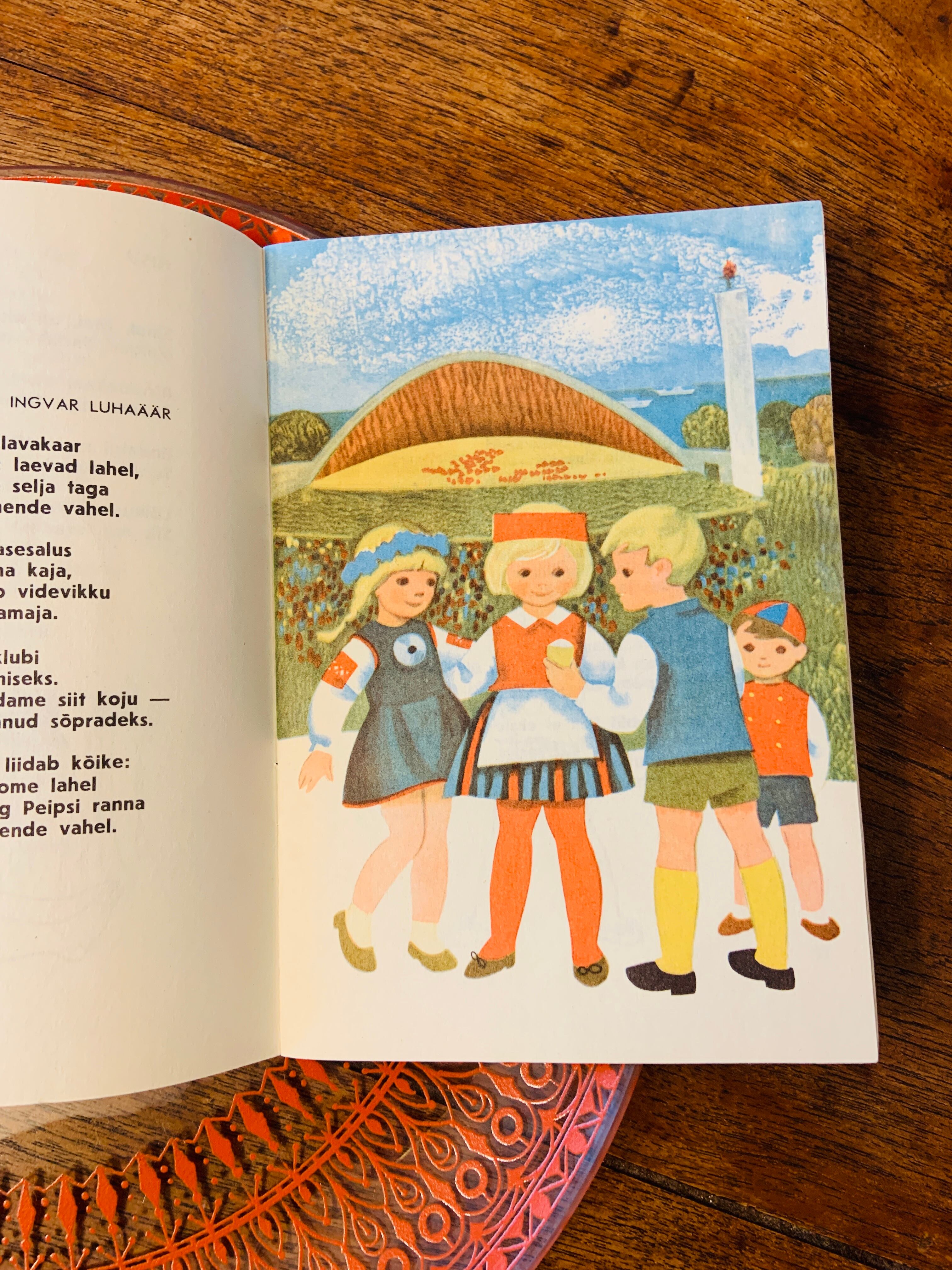 エストニアの少年少女の民族衣装や外で遊ぶ姿の絵が、古き良き時代を感じさせる色合いと相まって素敵です。