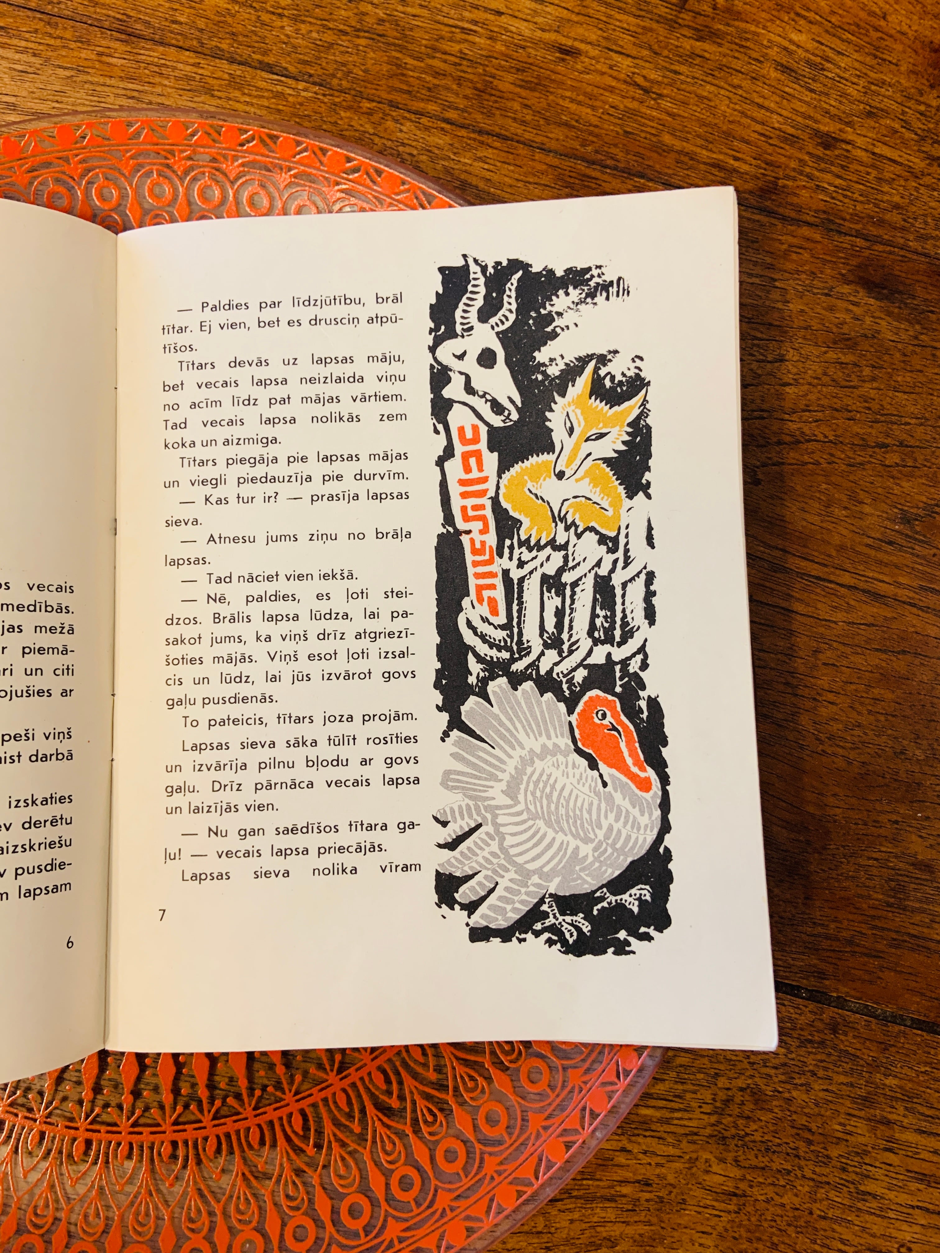 巻頭には「Vecais lapsa un tītars(古いキツネと七面鳥)」などの物語が収録されてます。