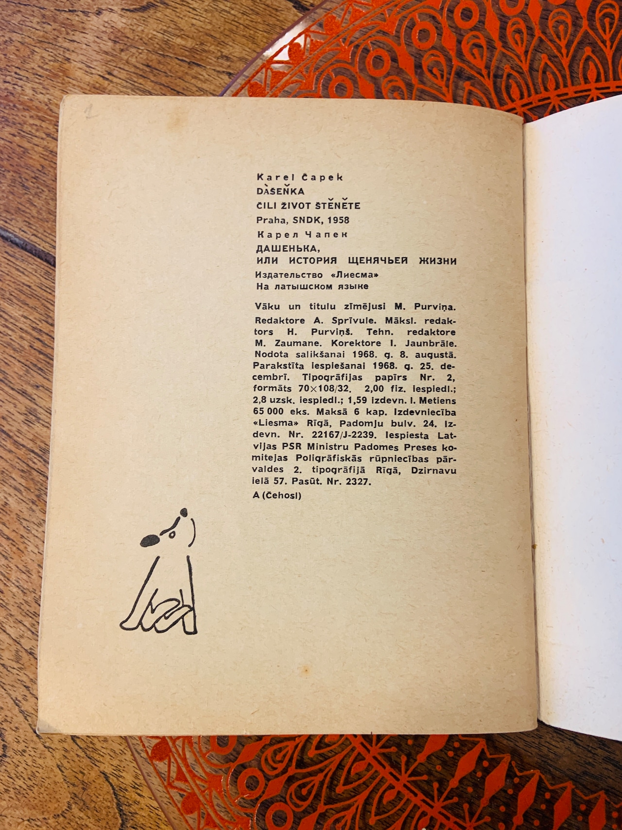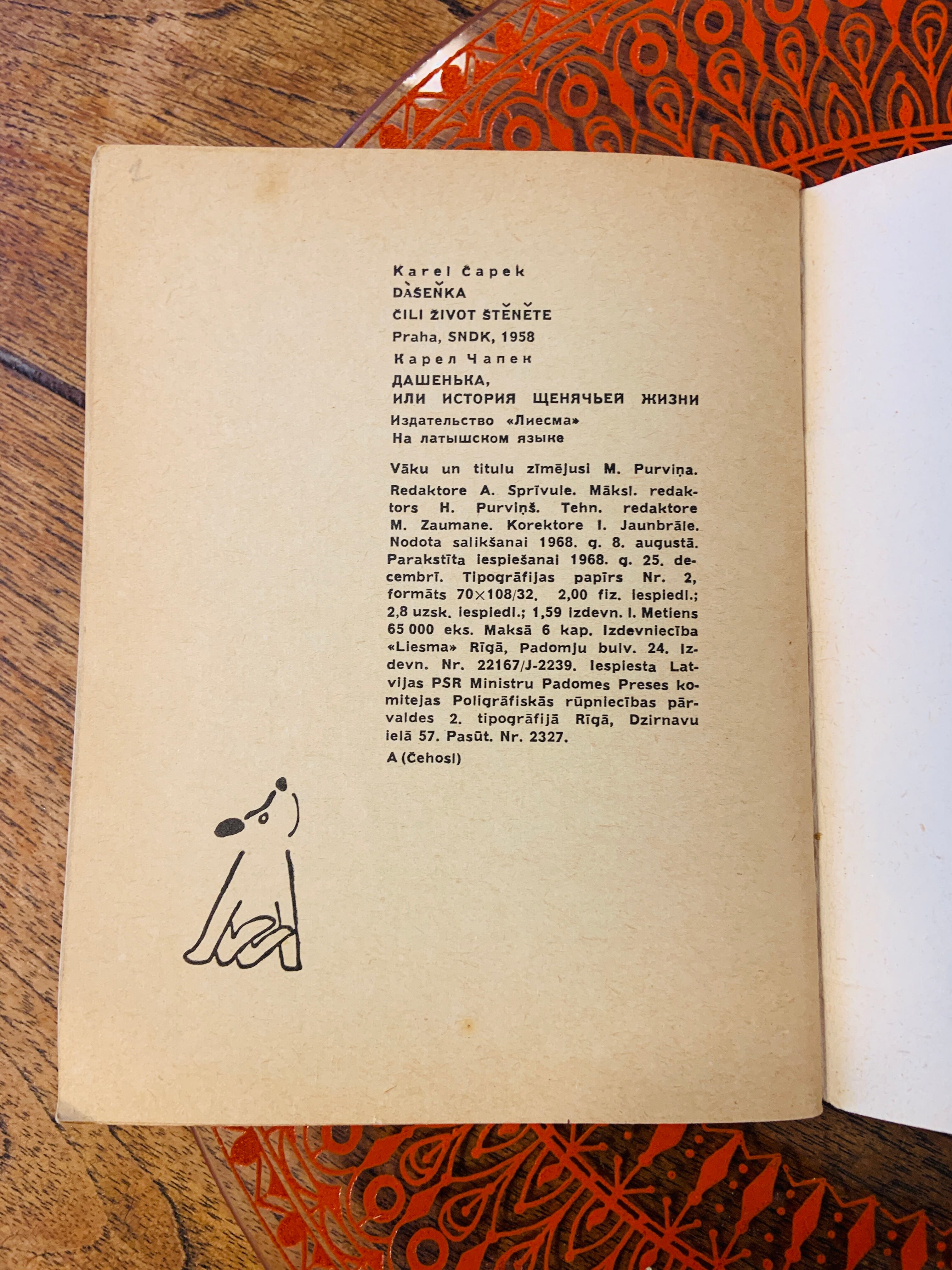 本「ダシェンカ、または子犬の生活」カレル・チャペック作 ソ連時代のラトビア語本 1968年出版