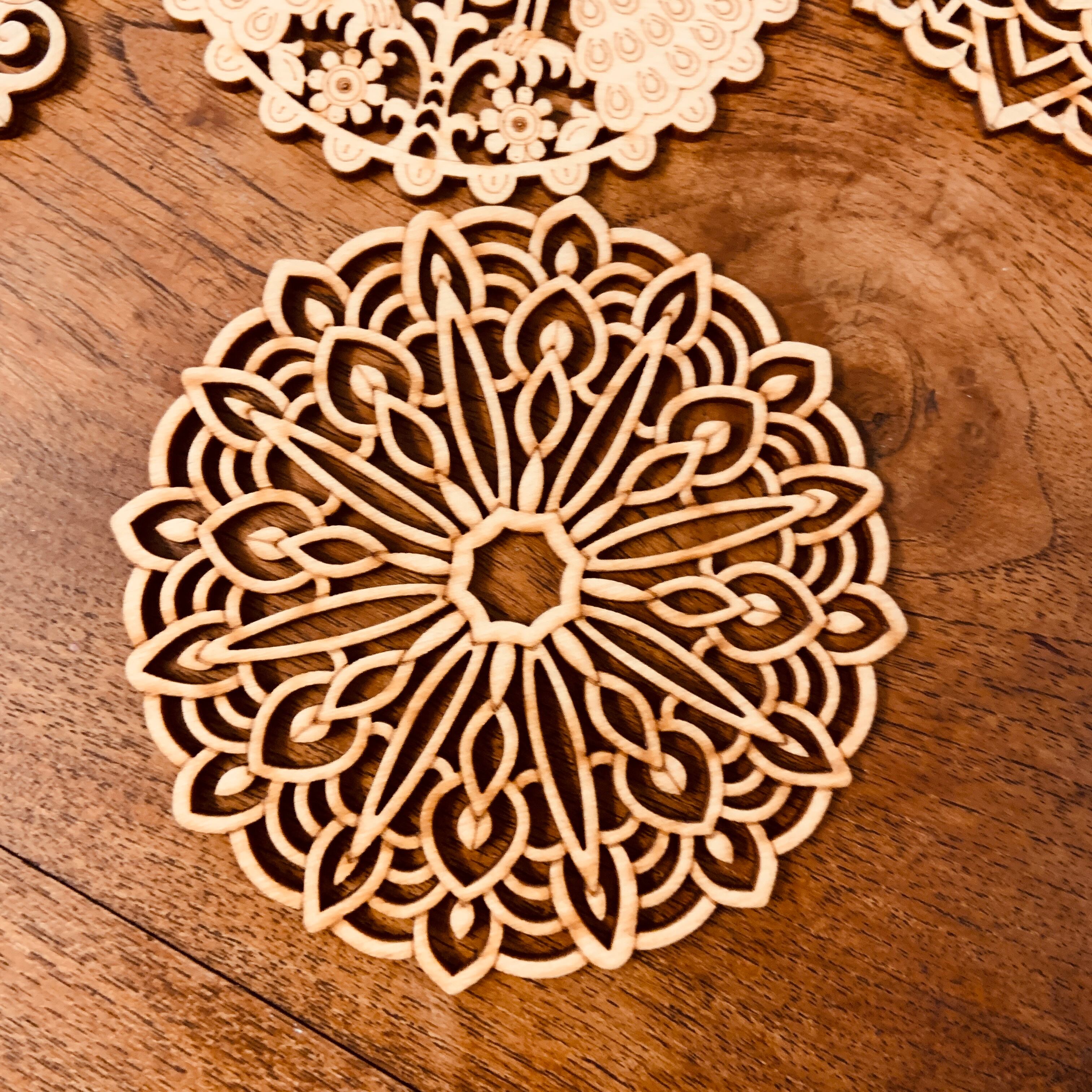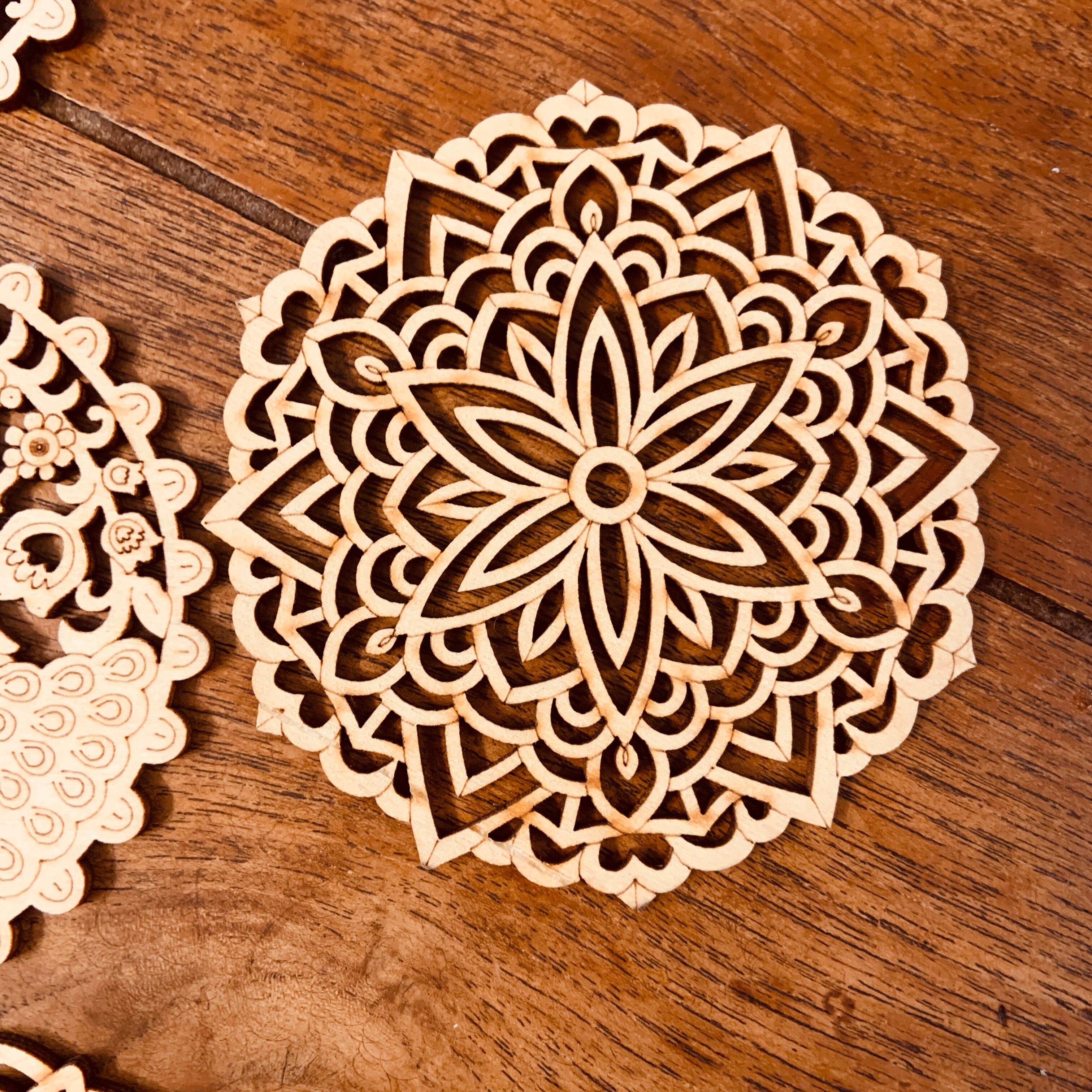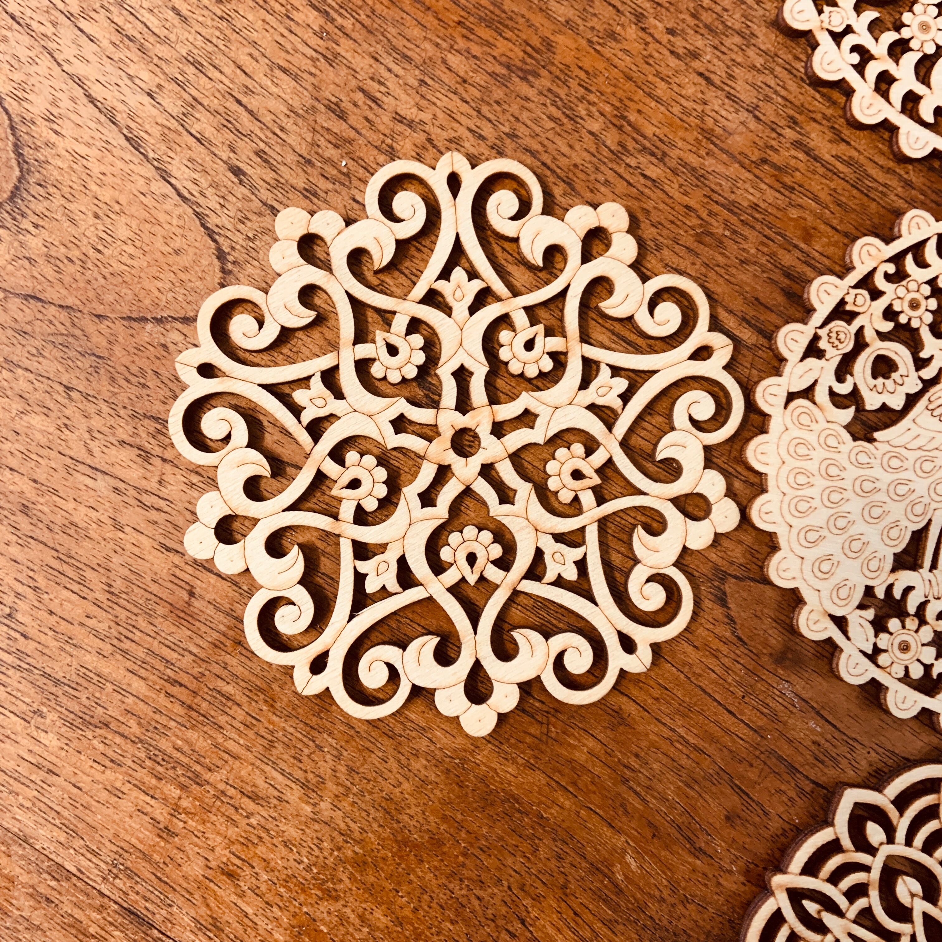 天然素材の木材をレーザーでカット・切り抜いたコースターです