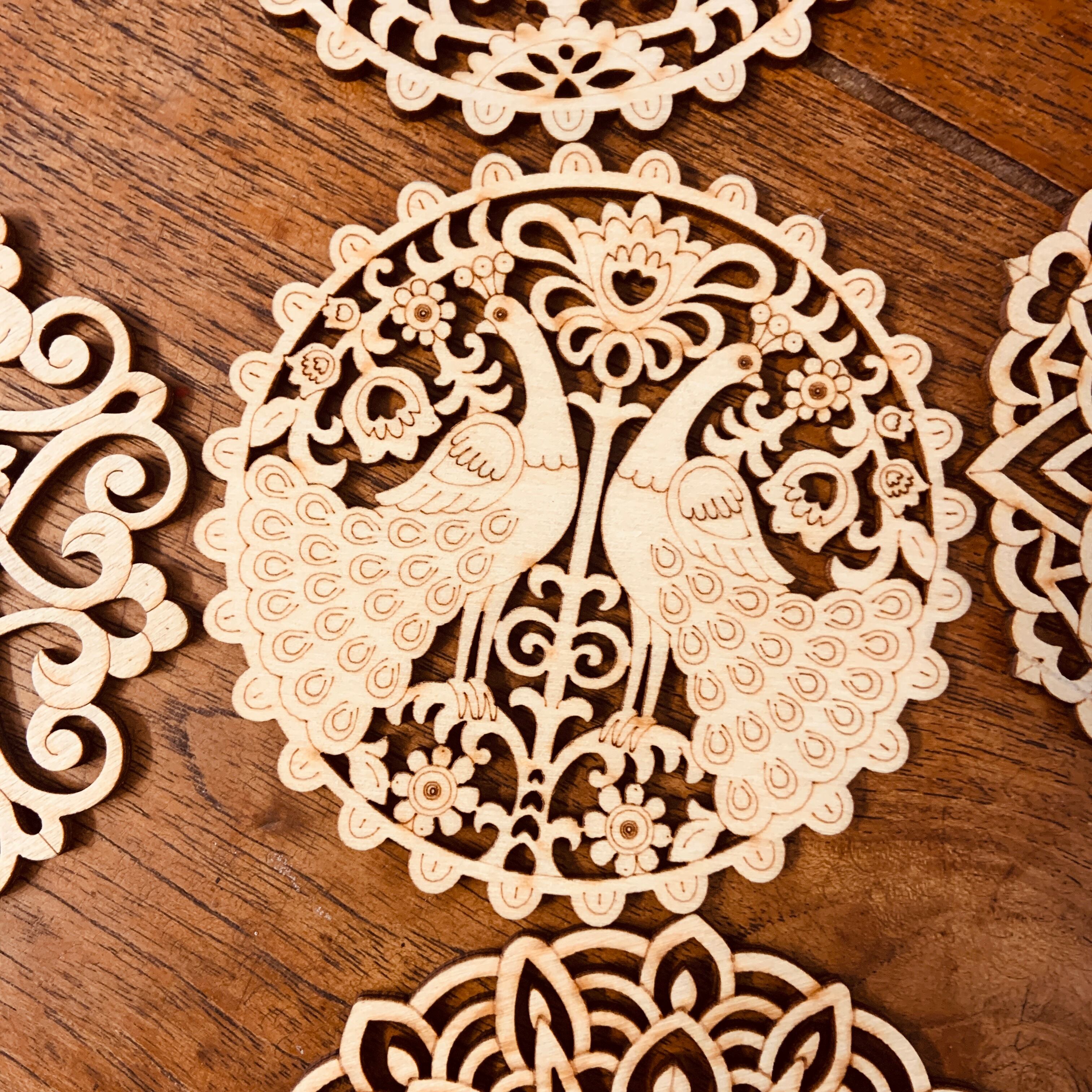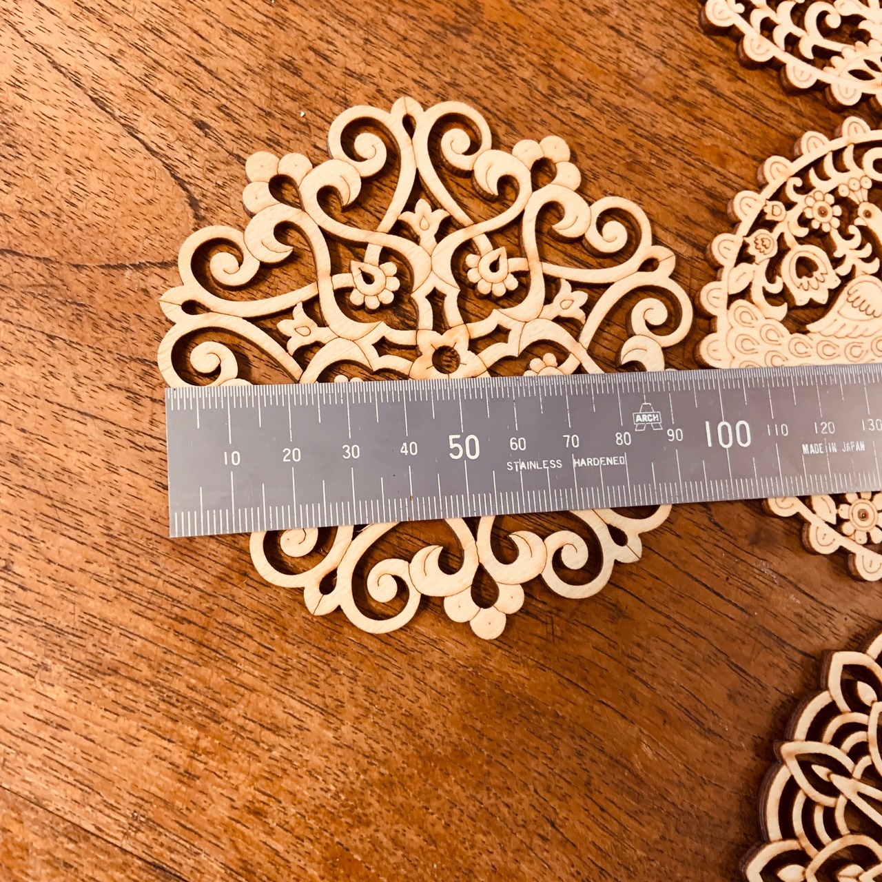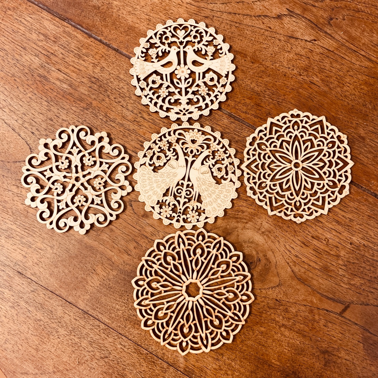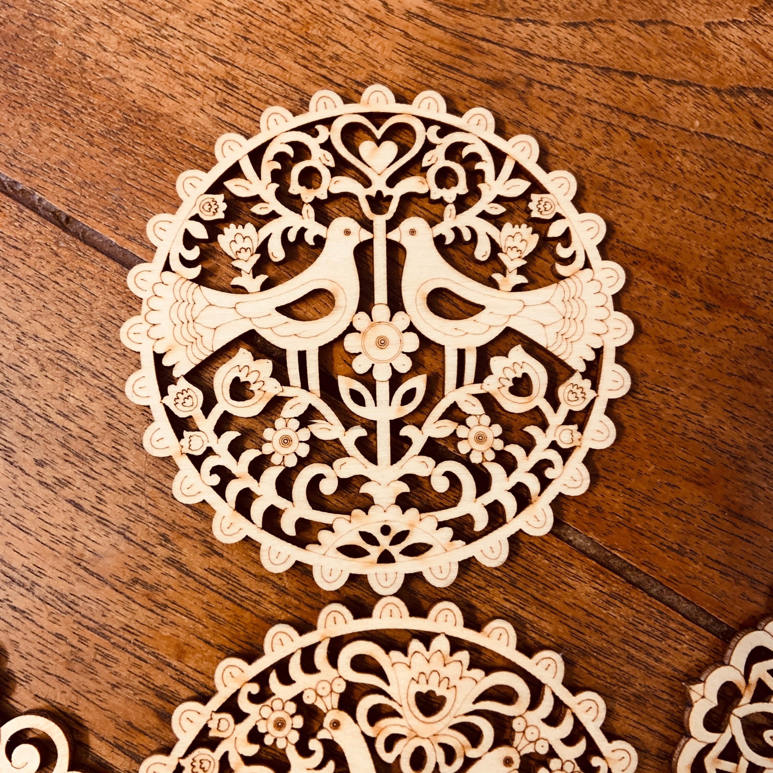 天然素材の木材をレーザーでカット・切り抜いたコースターです