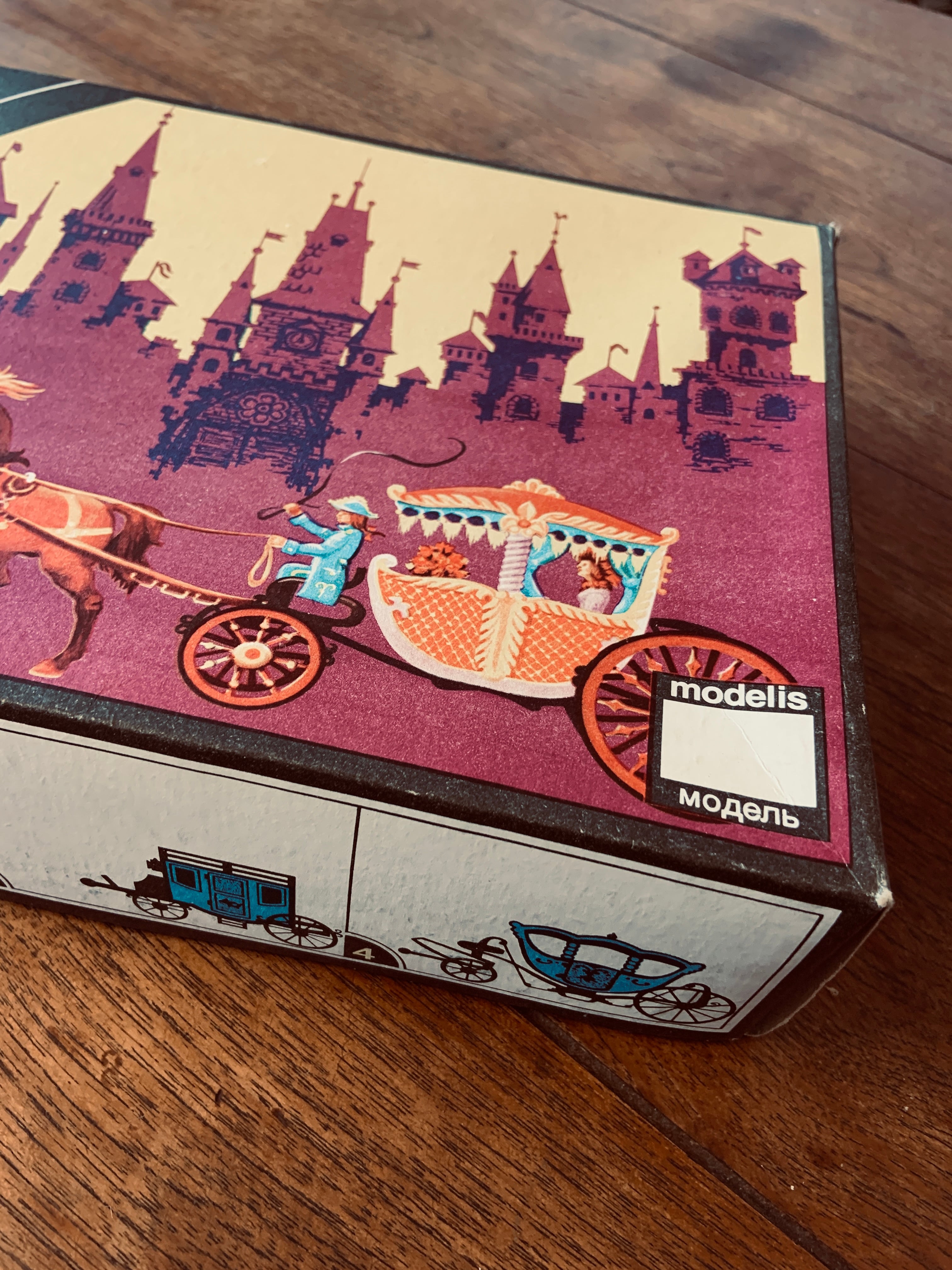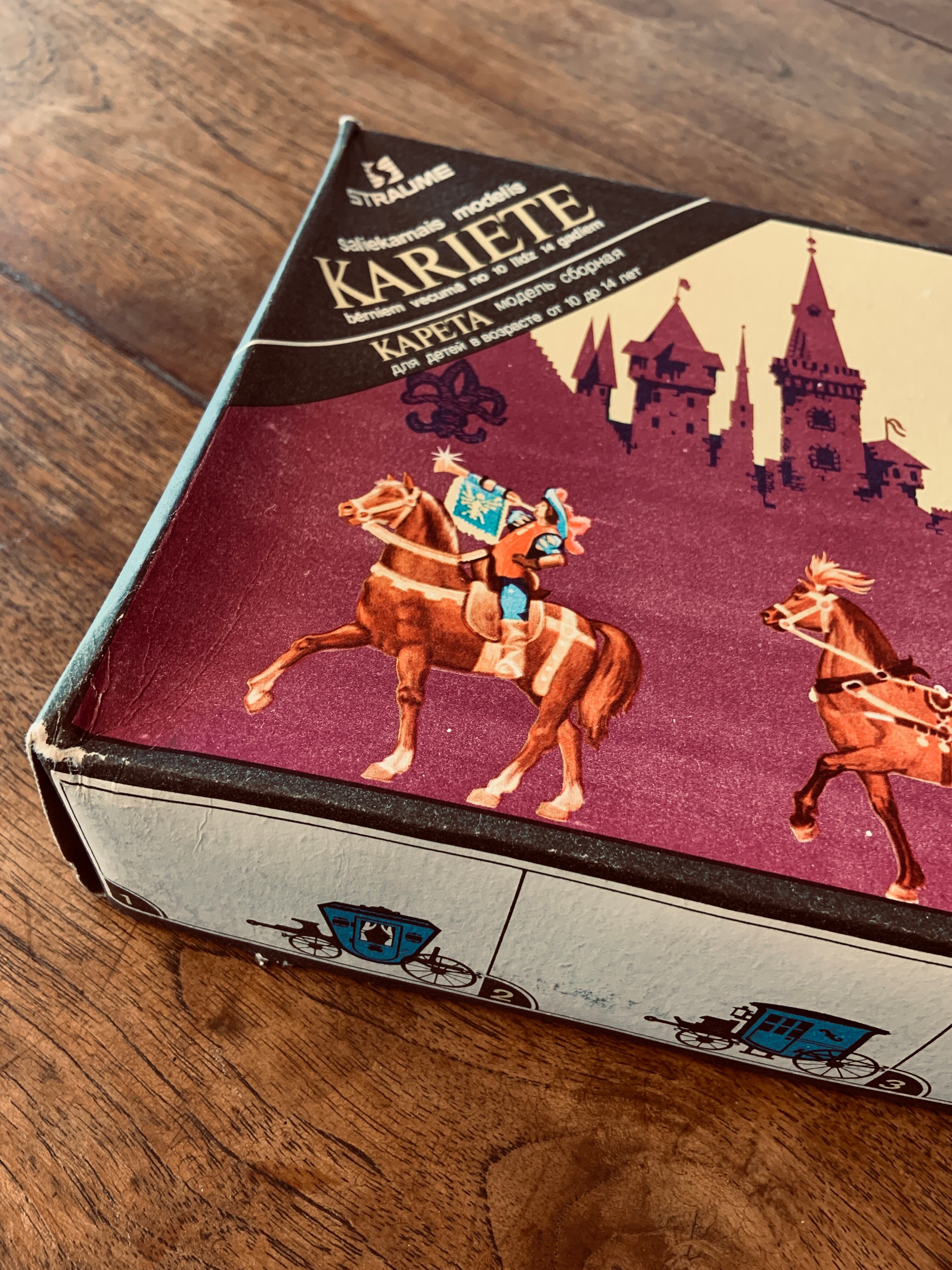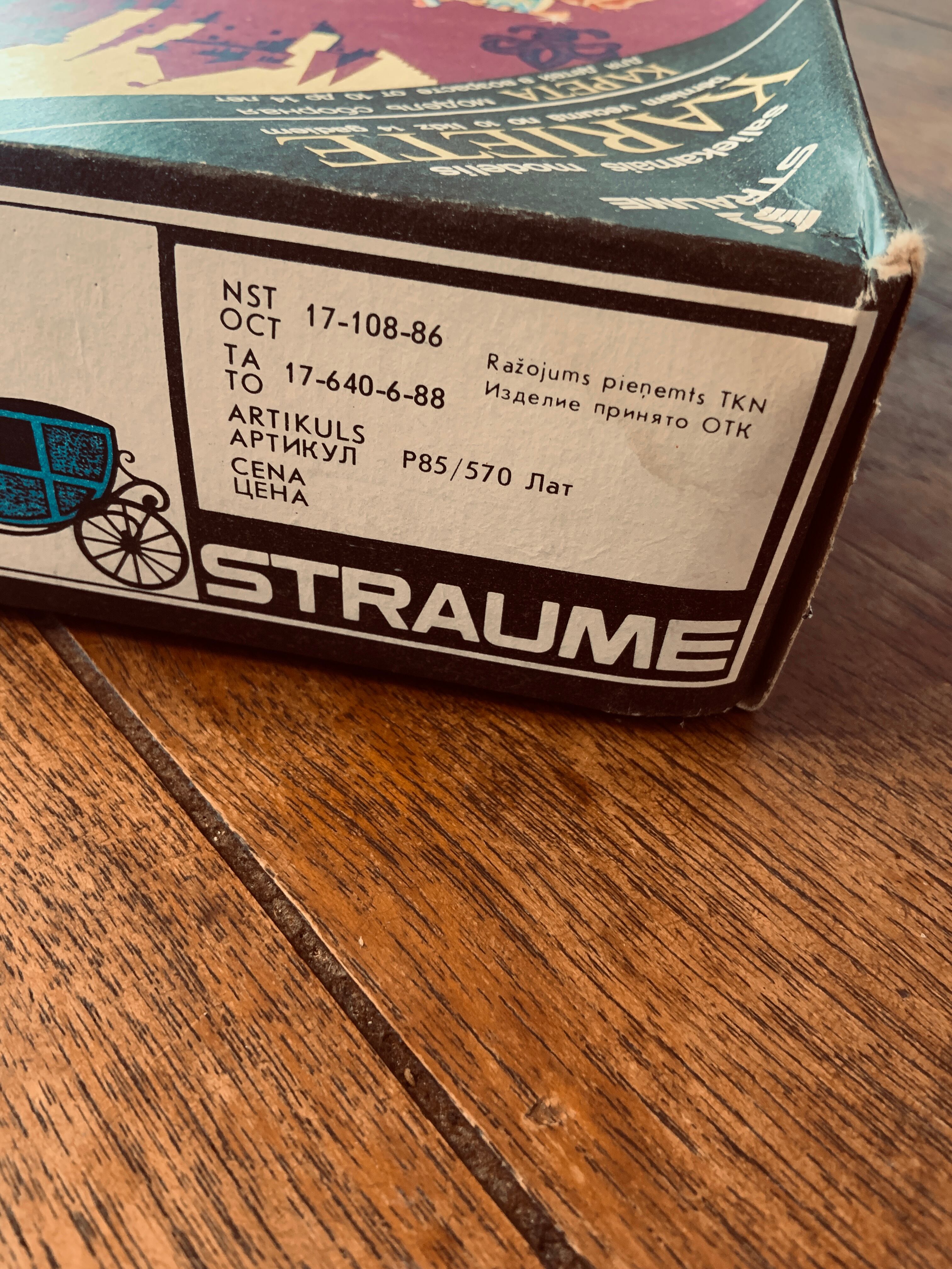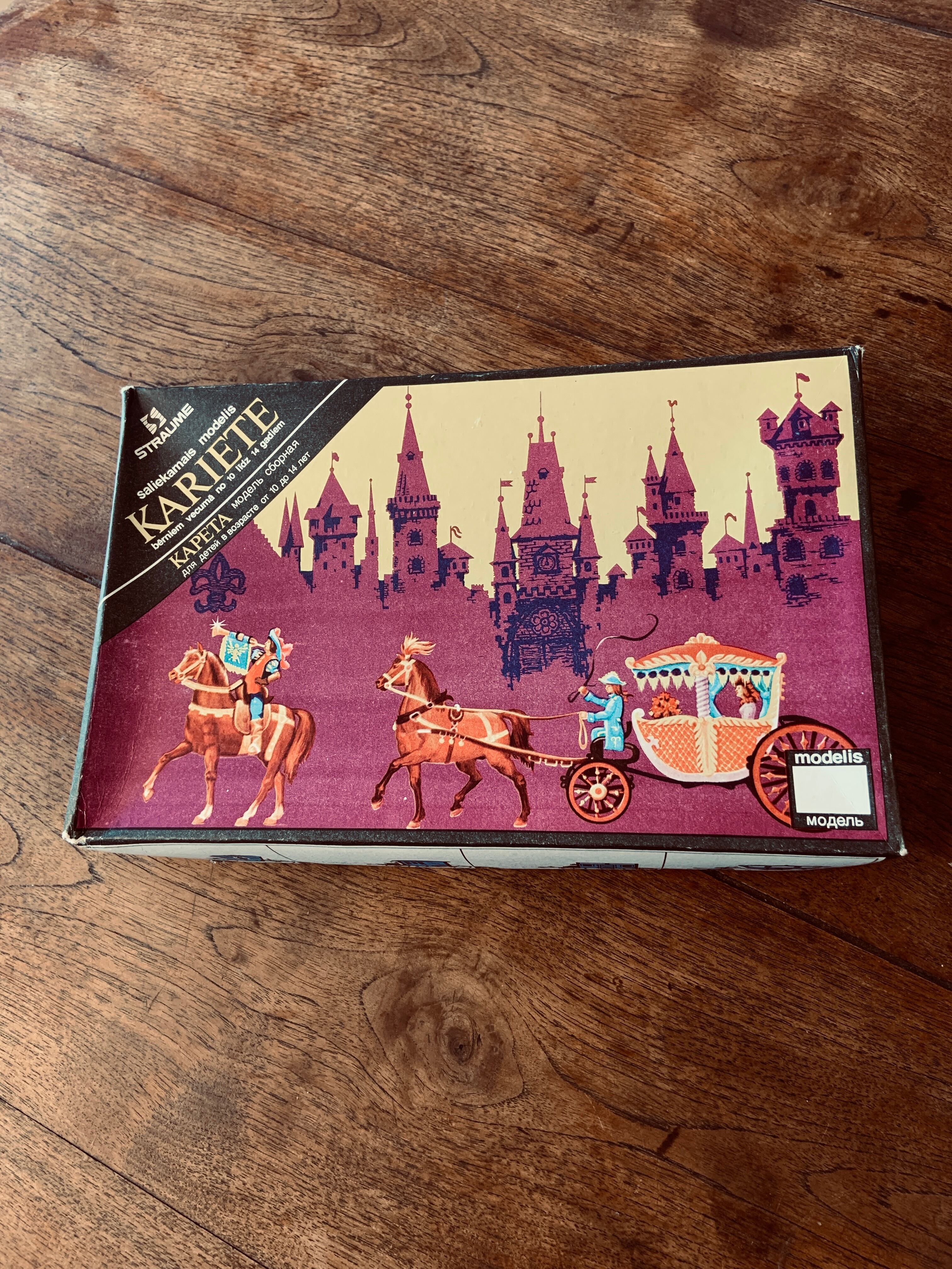 旧ソビエト連邦時代のラトビアのストラウメ(STRAUME)社が80年代後半に製造した、馬車(カレッタ/KARETE)のプラスチックモデル組み立てキットです。