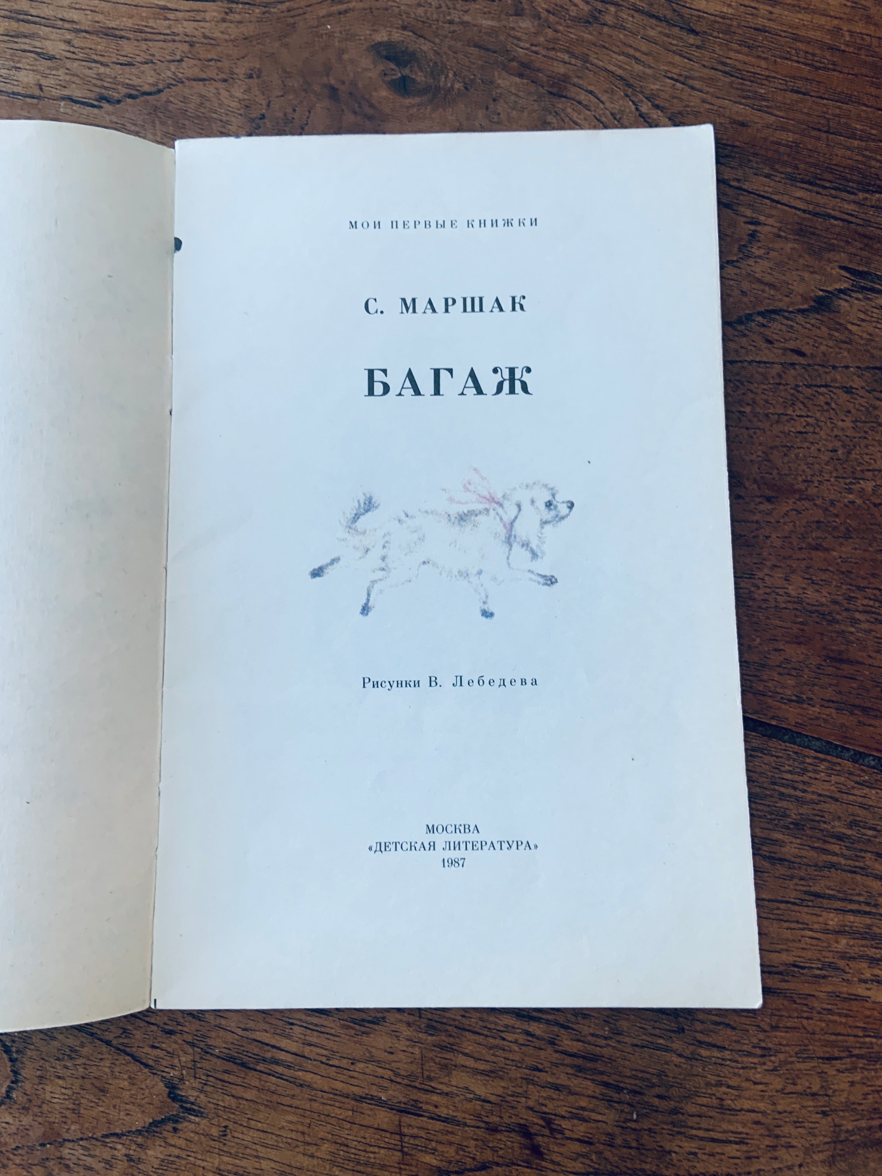 サムイル・ヤコブレヴィチ・マルシャーク(С. Маршак)による児童詩「バガージュ(Багаж、意味:荷物)」で、ウラジーミル・レベデフ(В. Лебедев)が挿絵を担当したロシア語の絵本です。