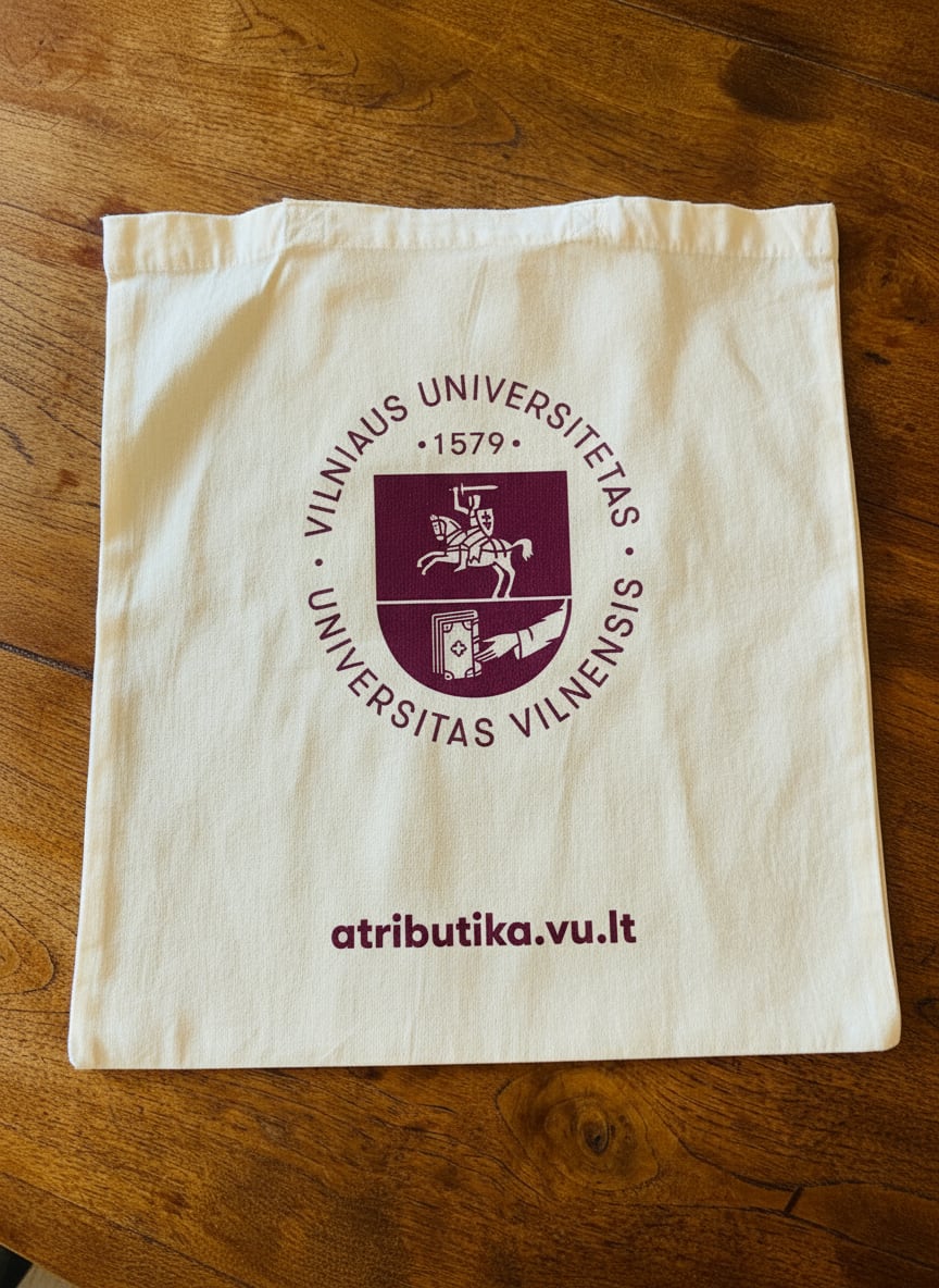 こちらは無地の生地にヴィリニュス大学のイメージカラーの紫で文字とロゴが入っています。
