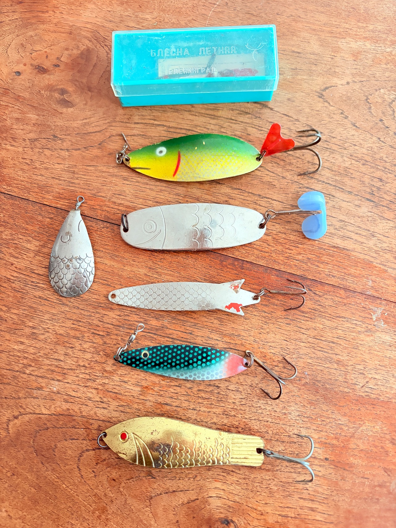 今回は箱入りの1匹と同時に買い付けたソ連当時に使われたと思われるルアーセットとなります。