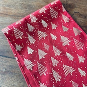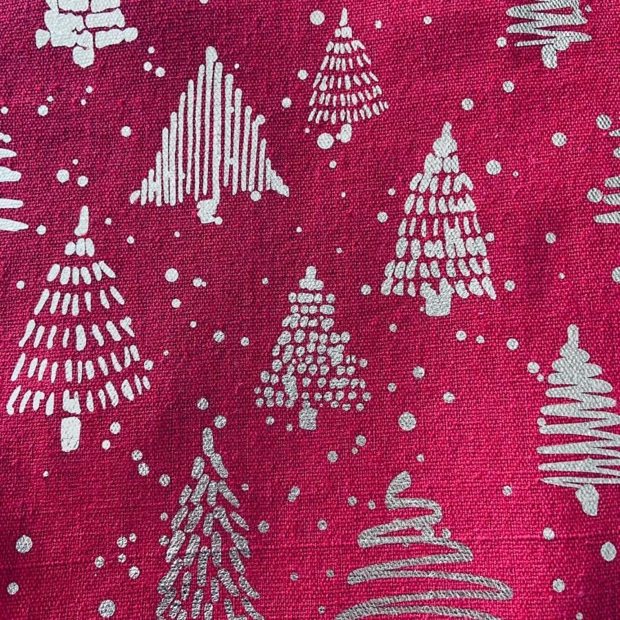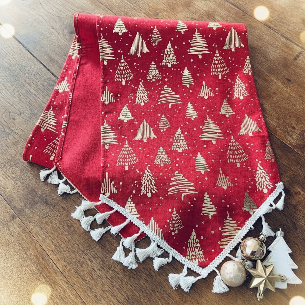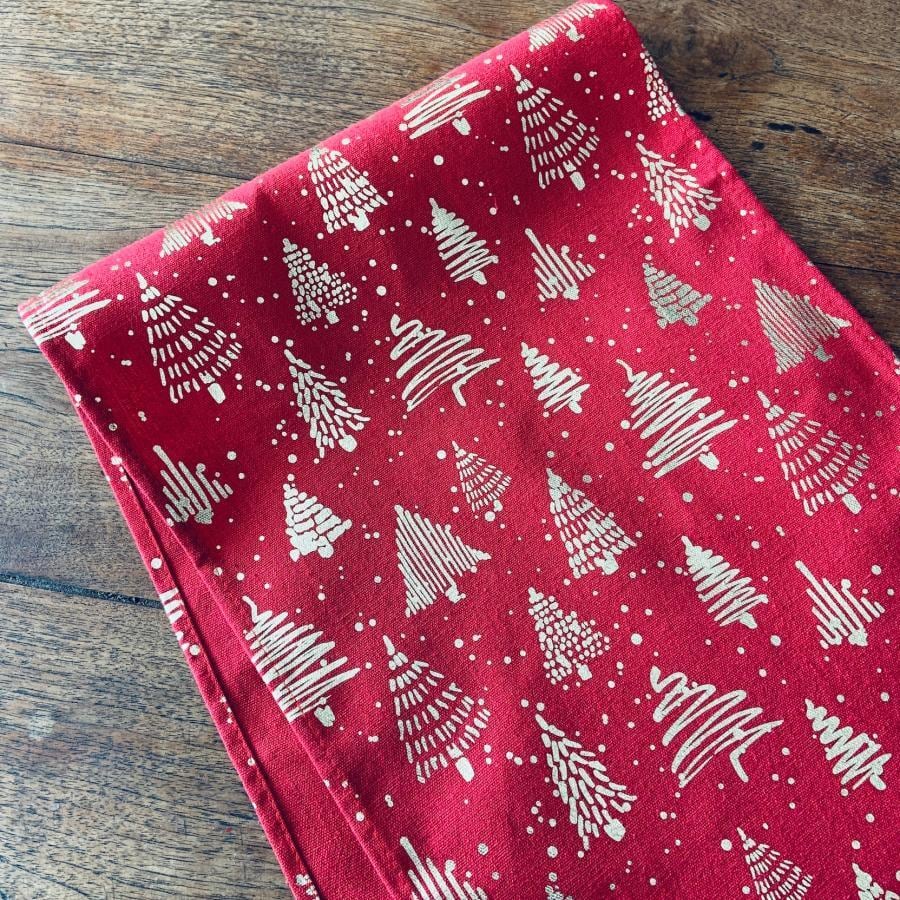 赤地に金色のモミの木刺繍が入り、素朴ながら華やかさがあります。