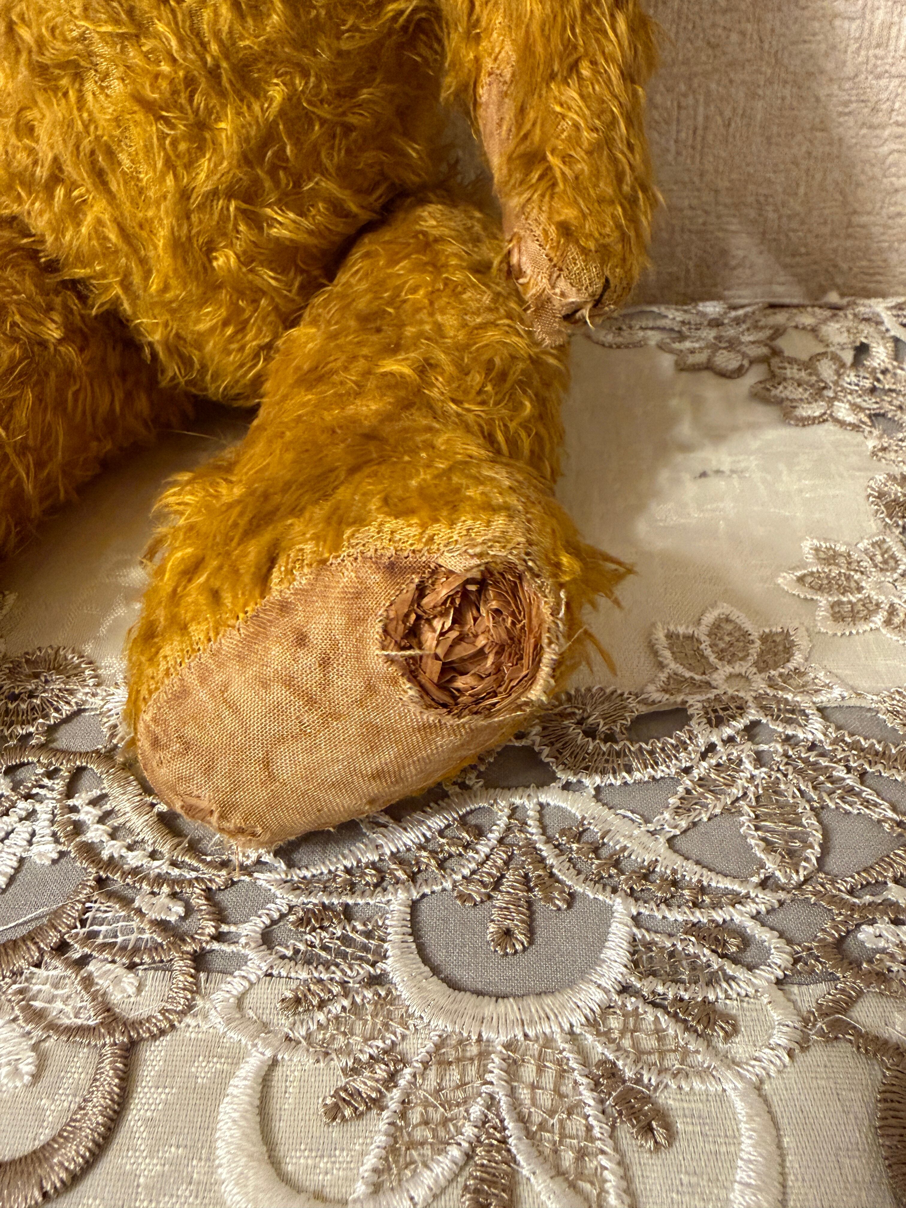 これは主に、羊毛が貴重だった第二次大戦中から戦後(1940年代頃)のベアに見られる特徴ですが、戦前の物資統制が始まった1930年代後半に作られた可能性も否定できません。