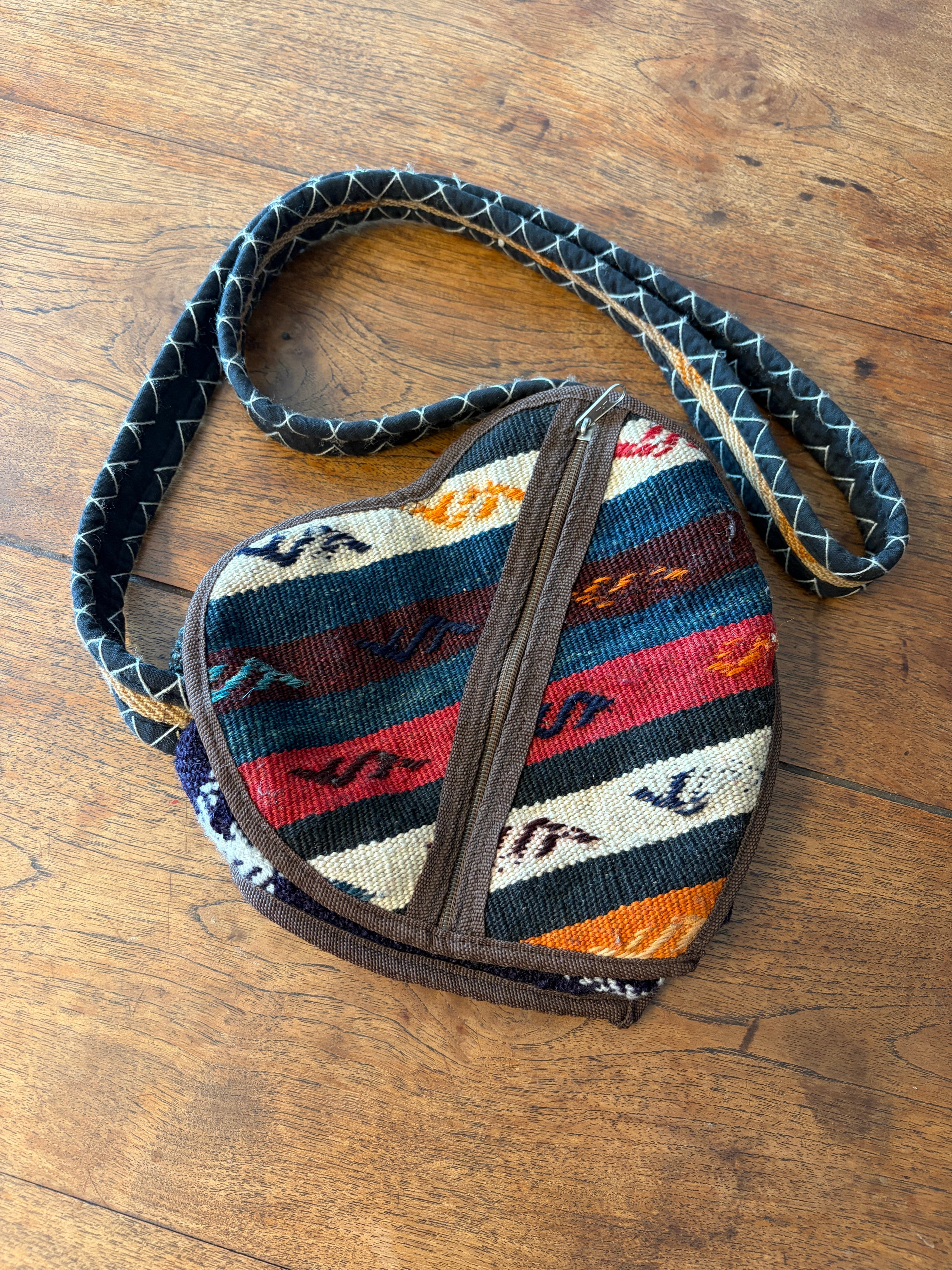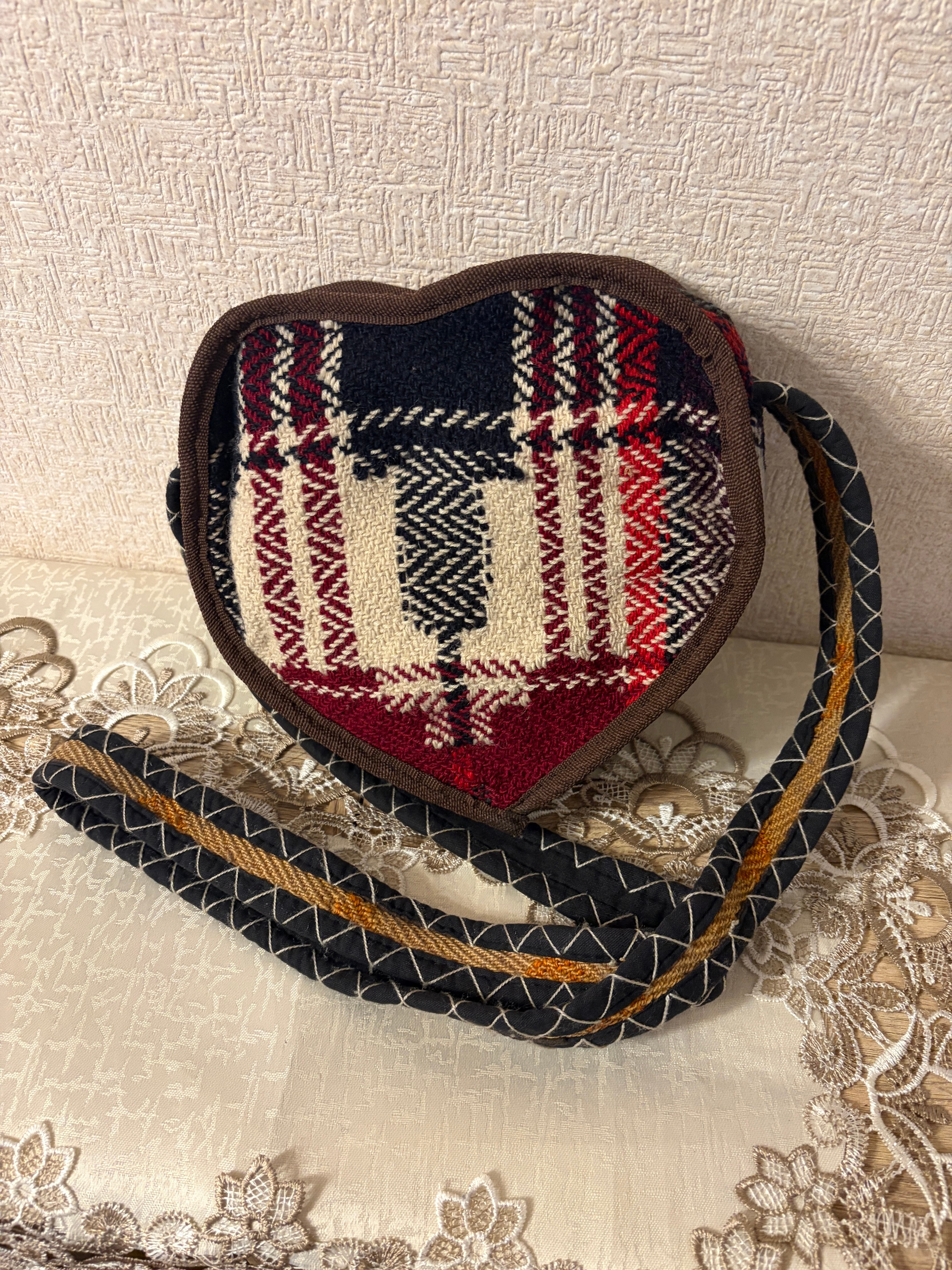 【アルメニアの手仕事】編み柄を楽しむ、ハート型ショルダーポーチ No.1