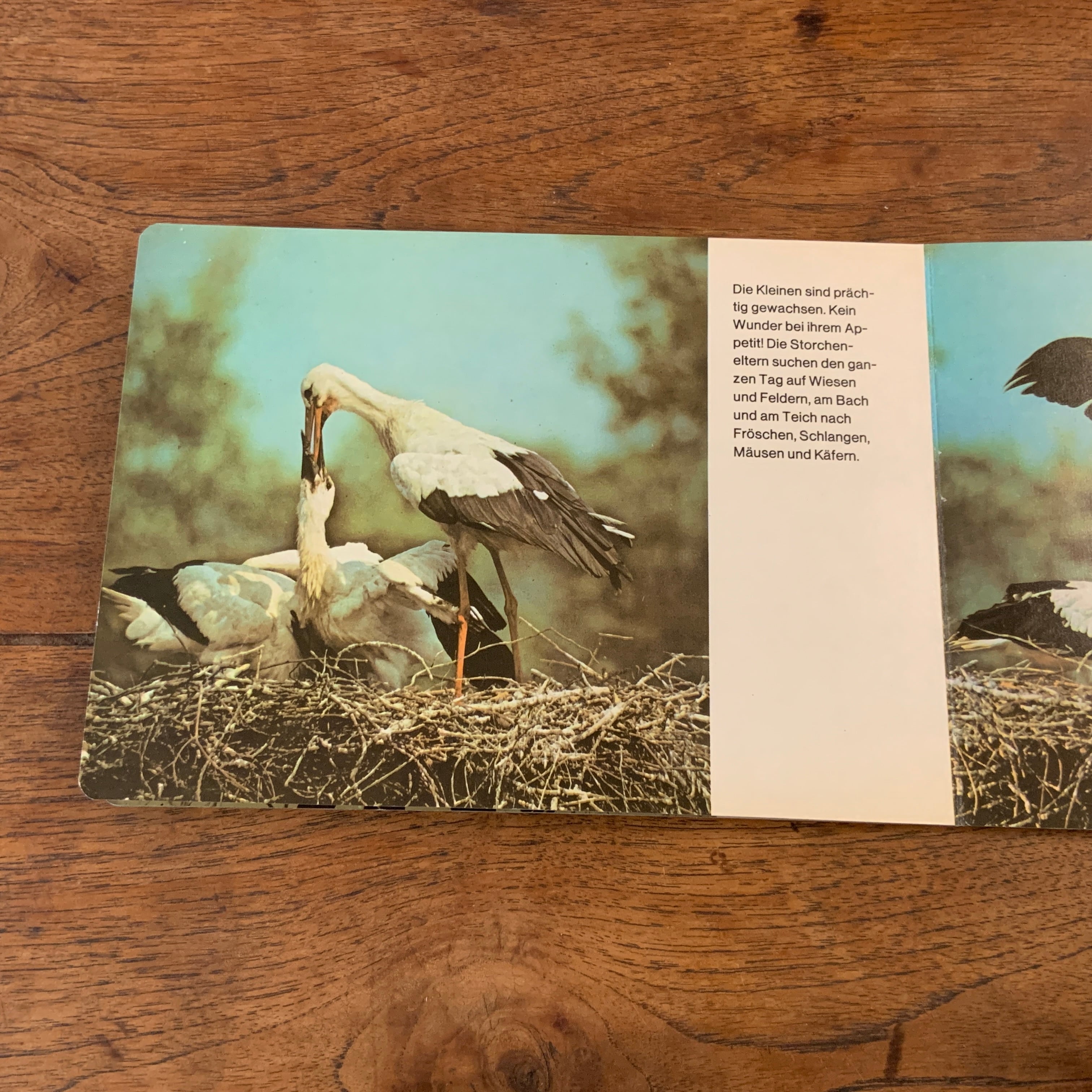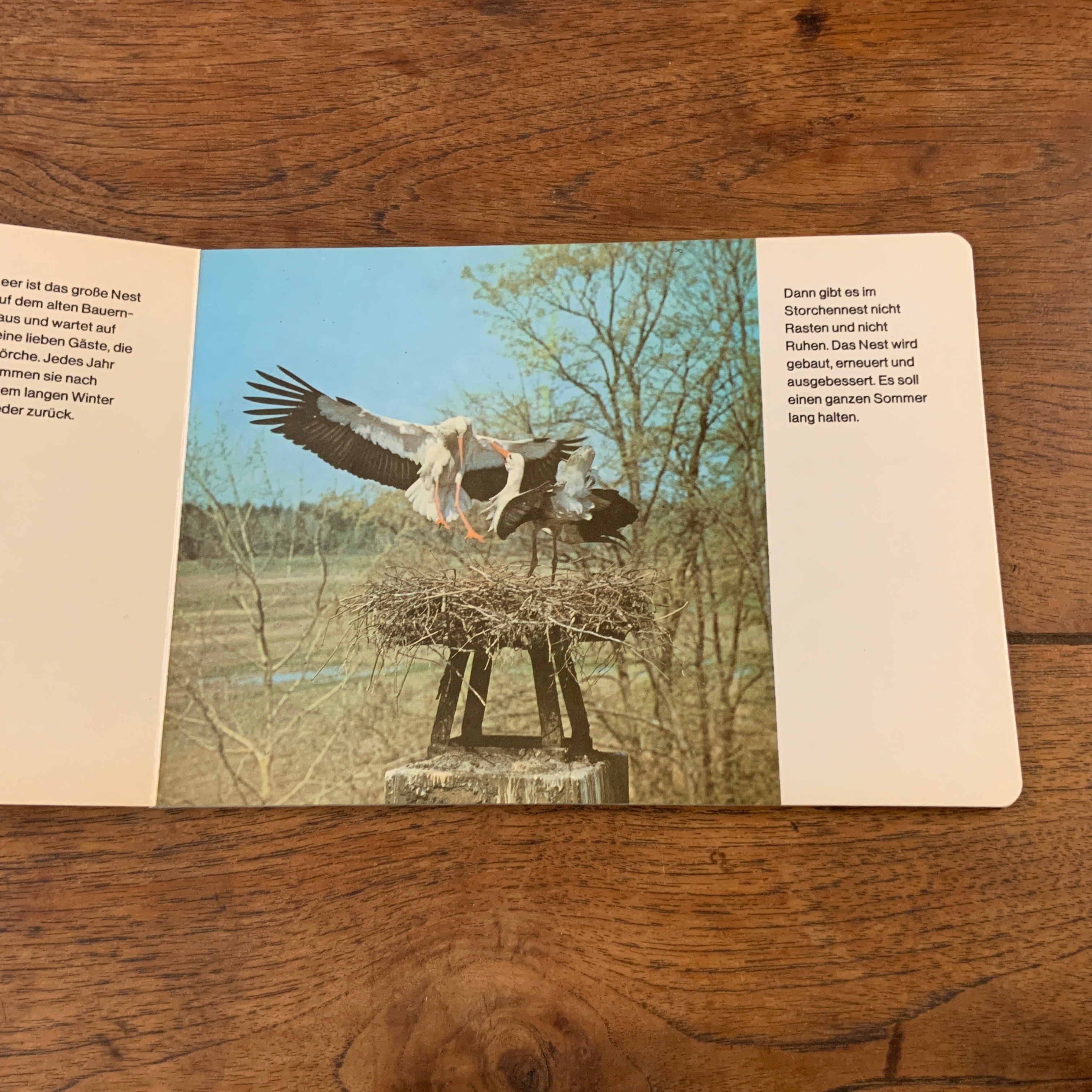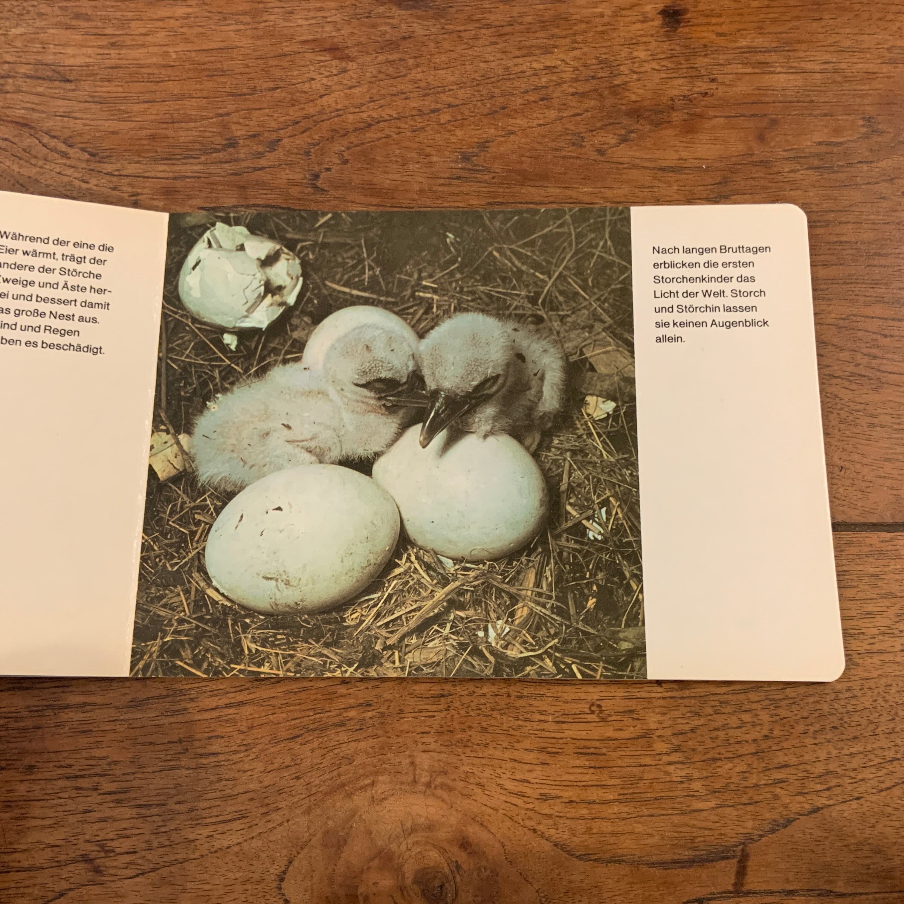 この本はコウノトリのカップルが子供を育てるストーリーの写真集です。