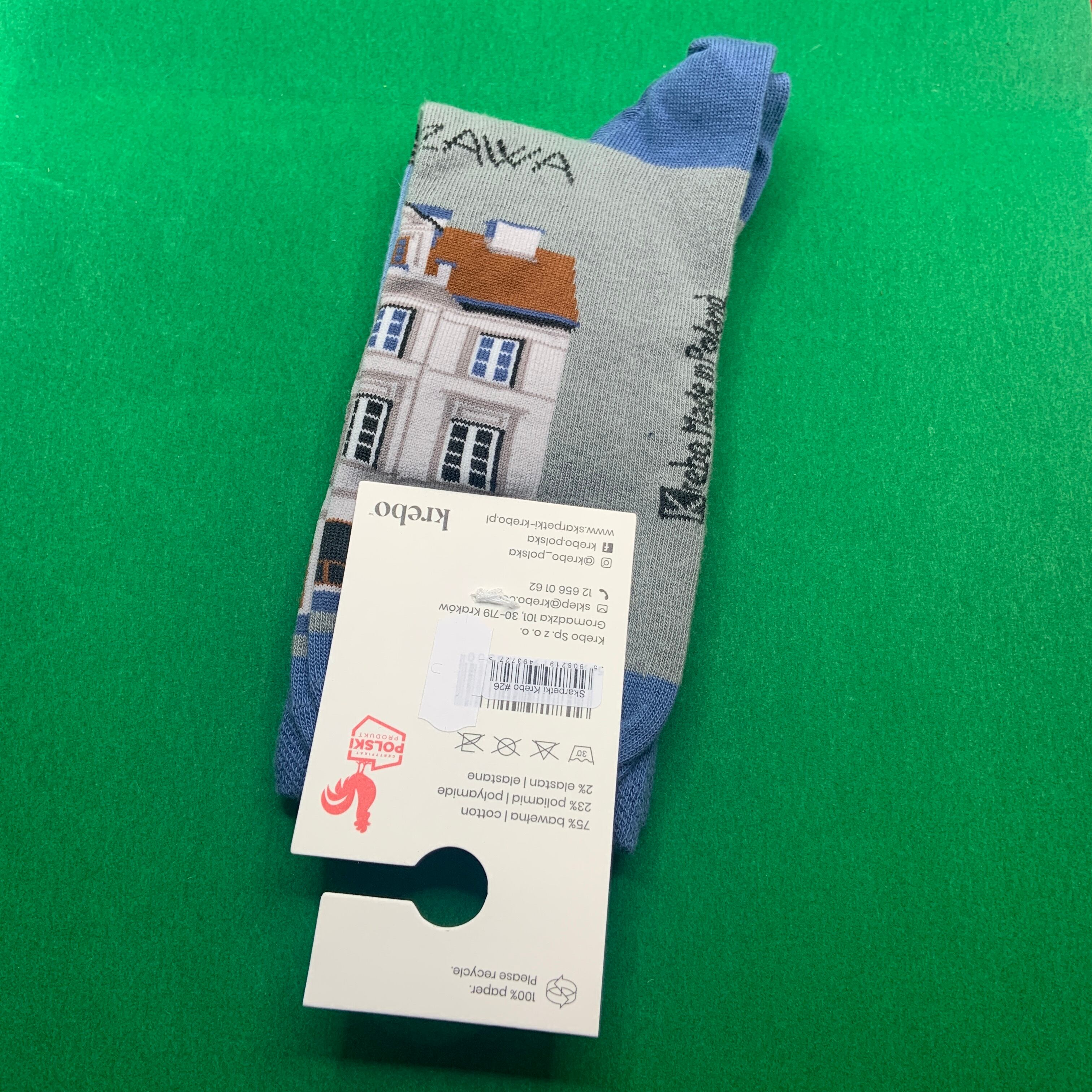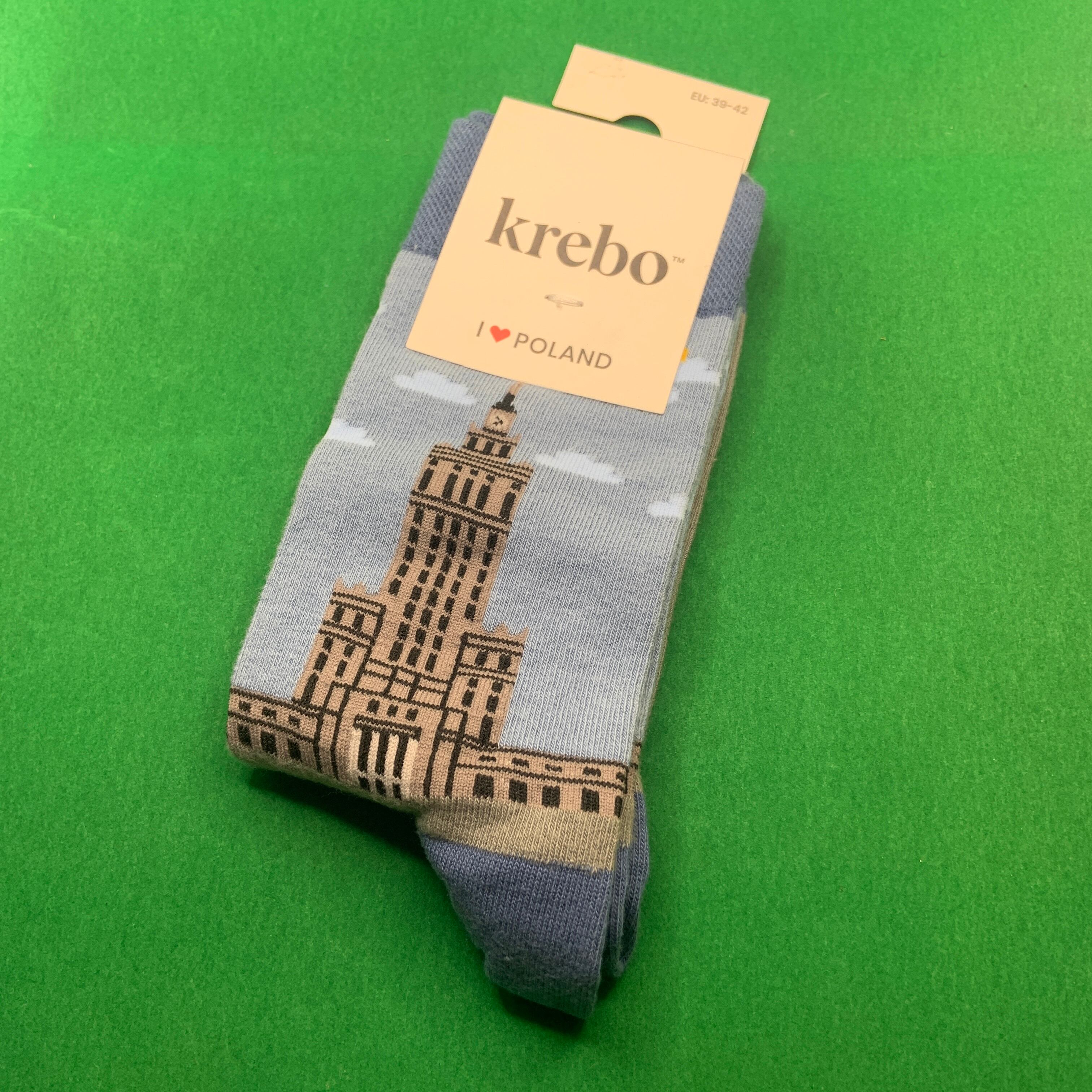 ポーランド ワルシャワ文化科学宮殿のソックス グレー地 krebo スネ丈 24.5-26cm目安