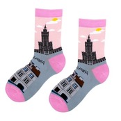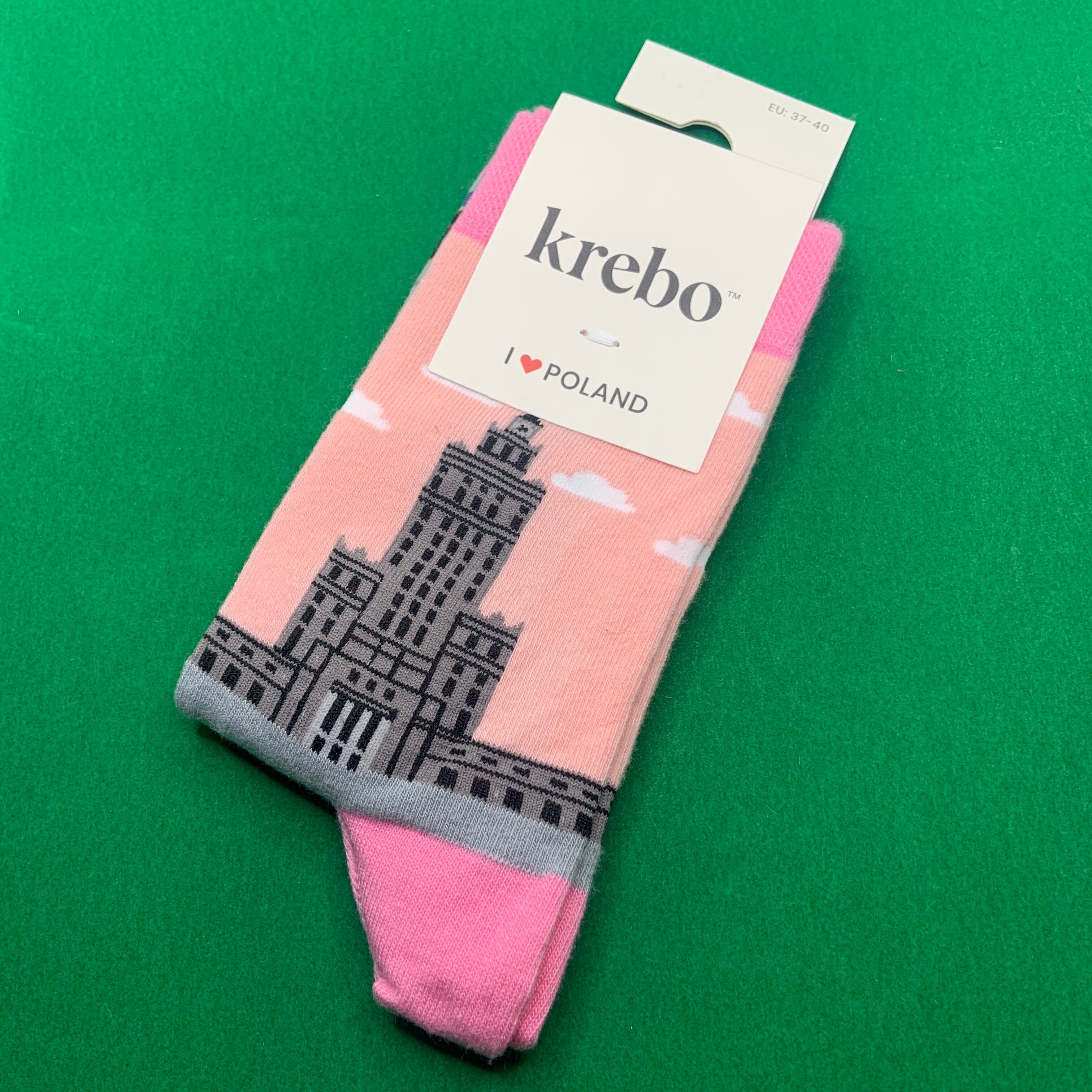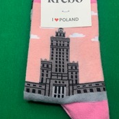 ポーランド ワルシャワ文化科学宮殿のソックス ピンク地 krebo スネ丈 23.5-25cm目安