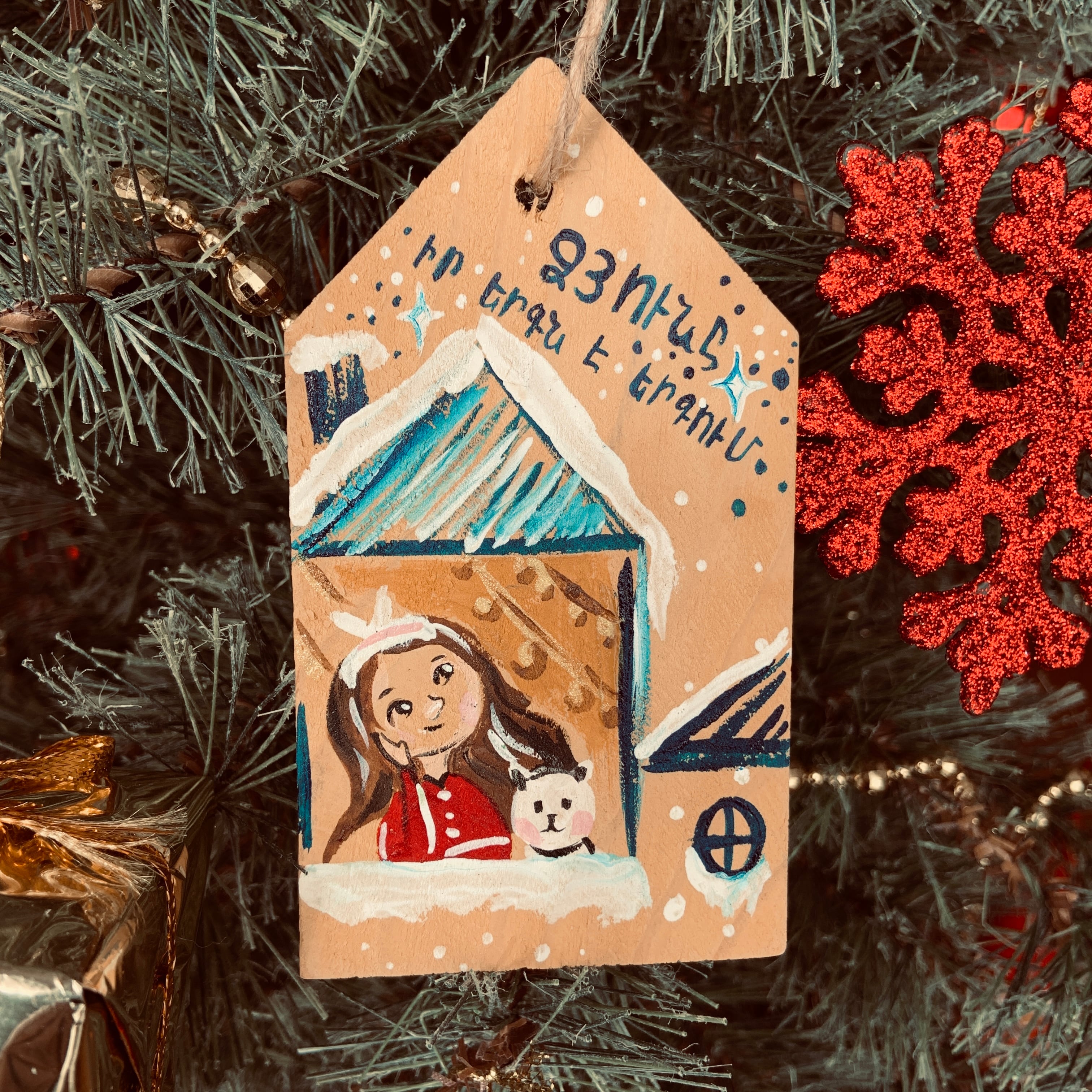 アルメニアの木製ハンドメイド・クリスマスオーナメント 女の子と犬①