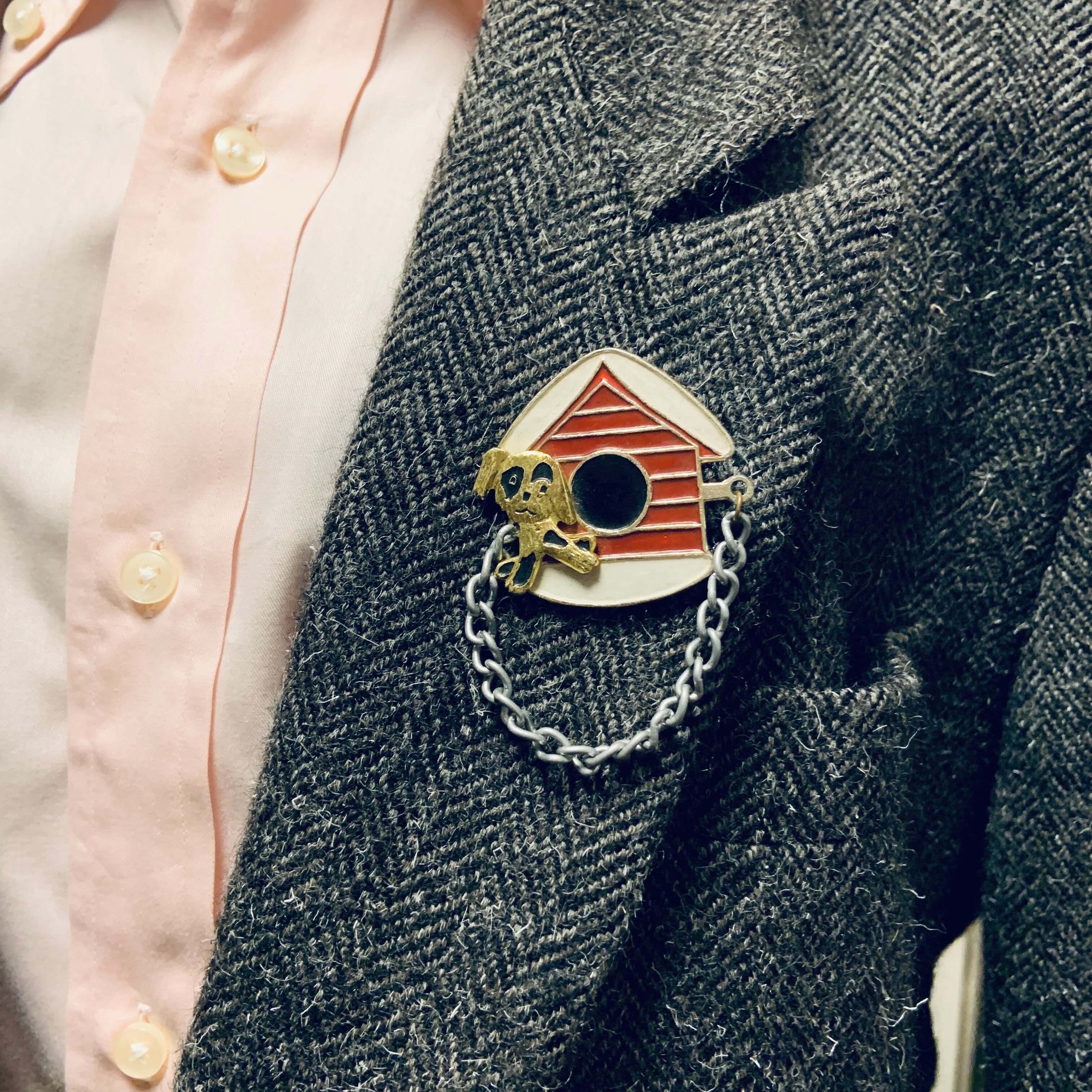 80年代ソビエト時代のワンちゃんのブローチ チェーンに繋がれて
