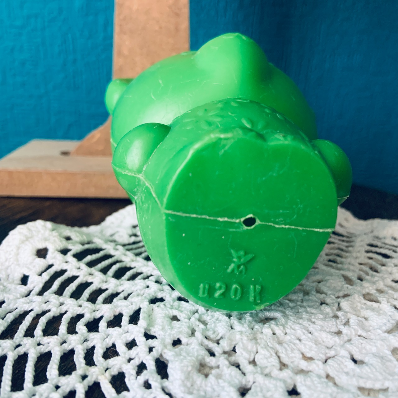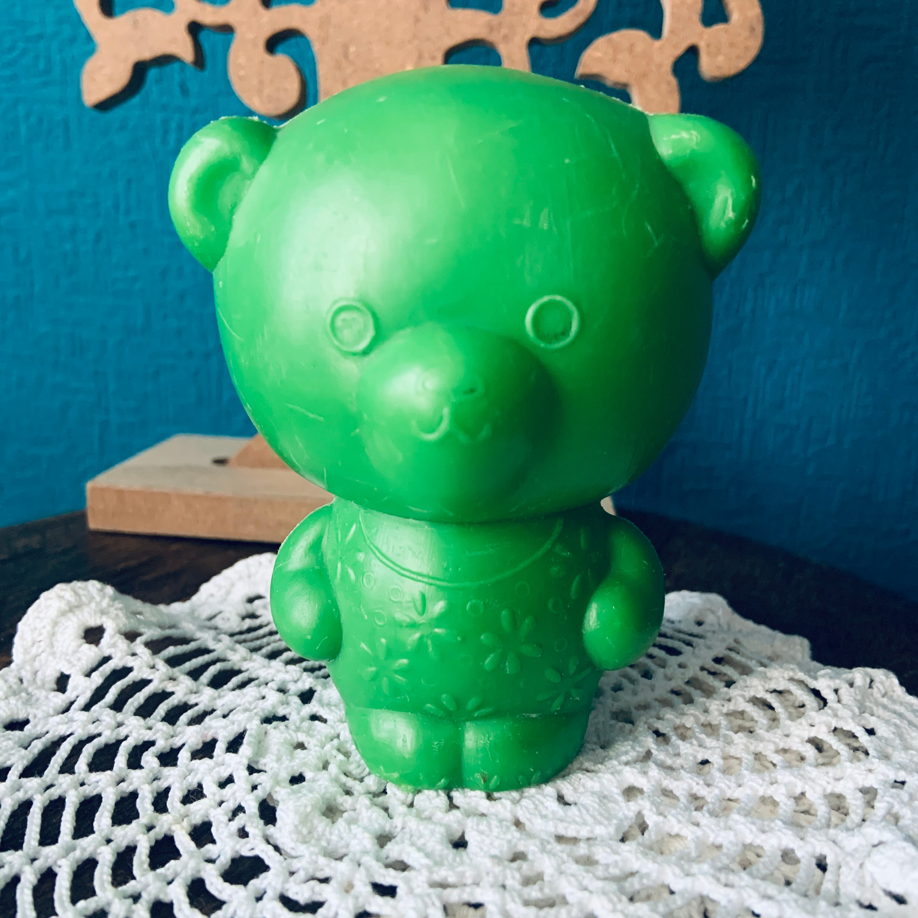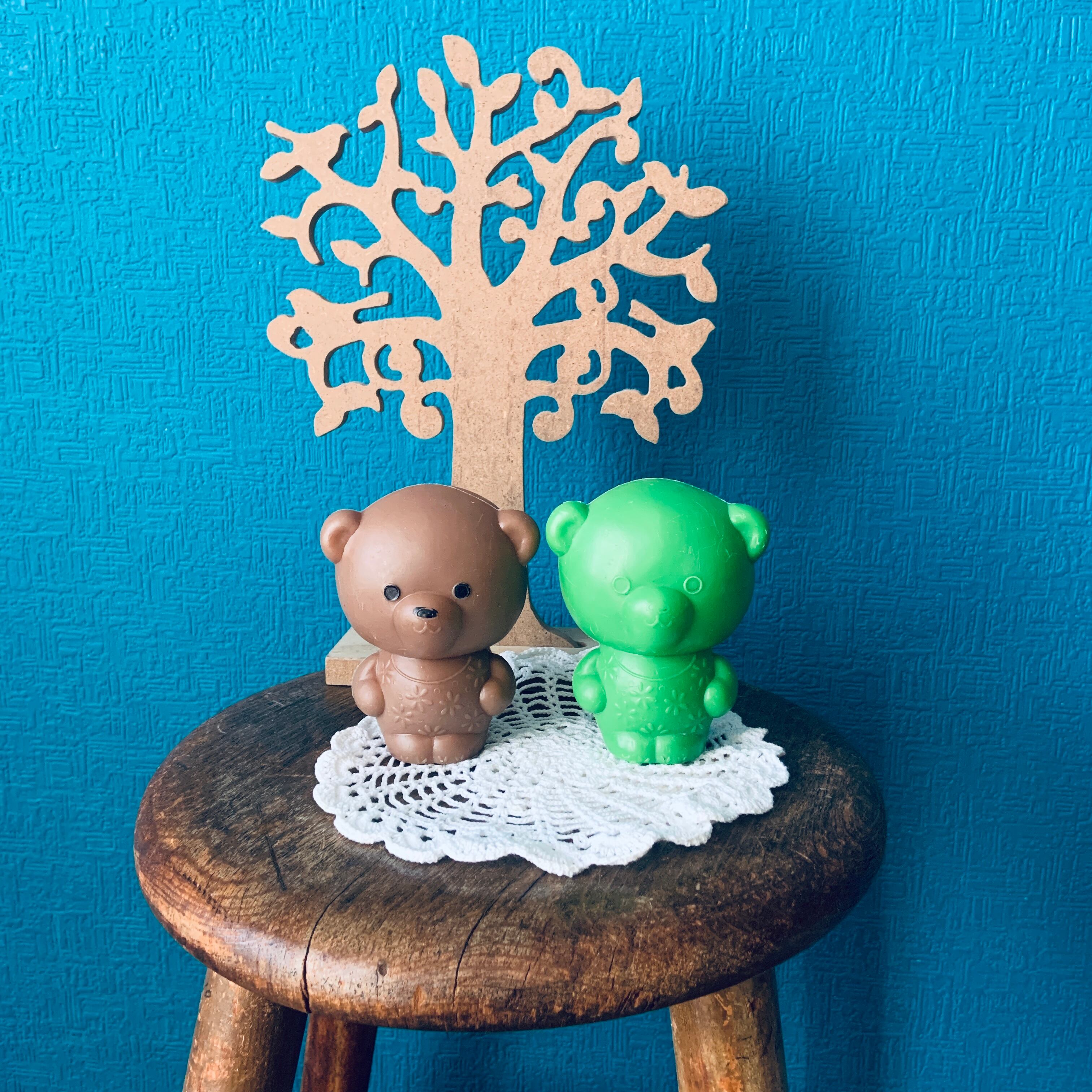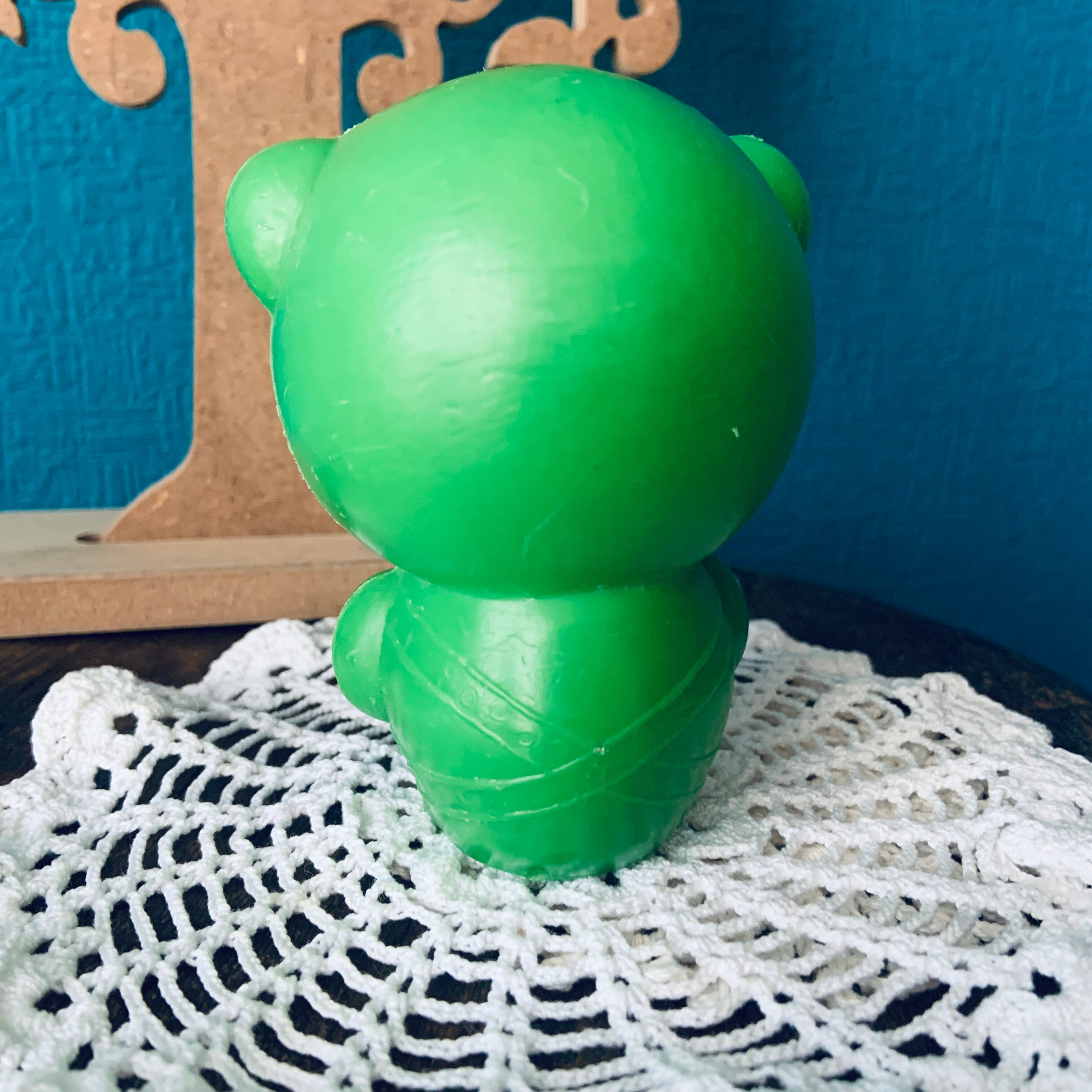 緑色と茶色のクマさん プラ人形 花柄の服着てる 旧ソ連 東欧雑貨 レトロ