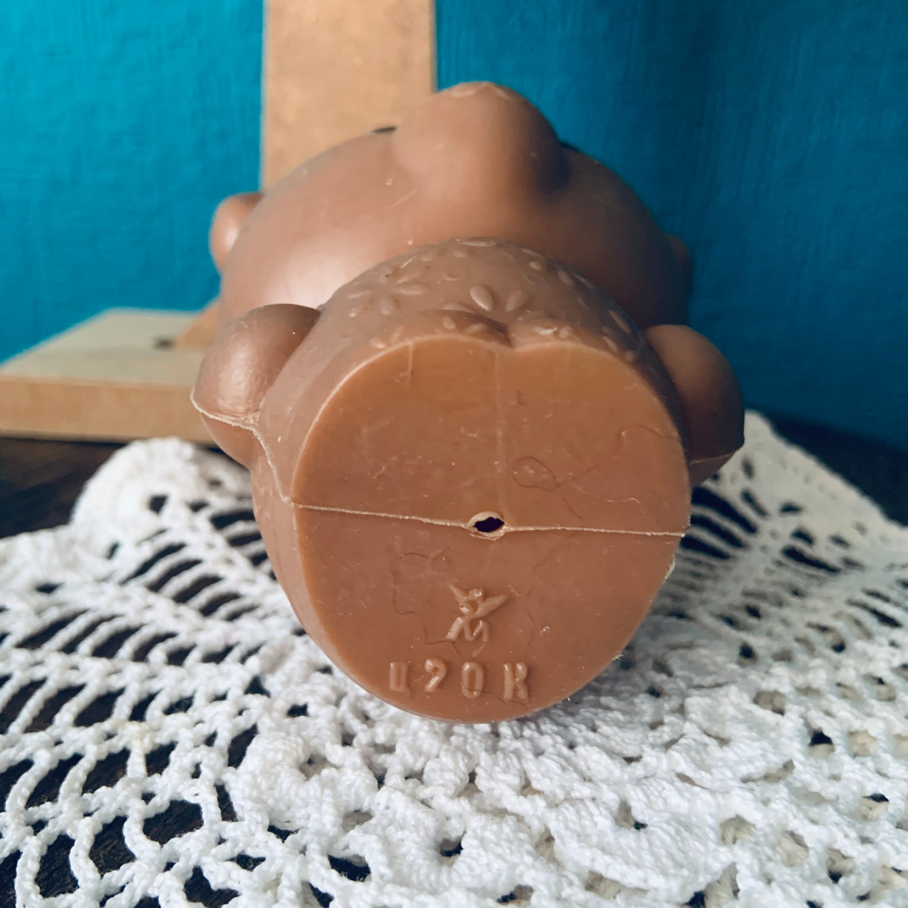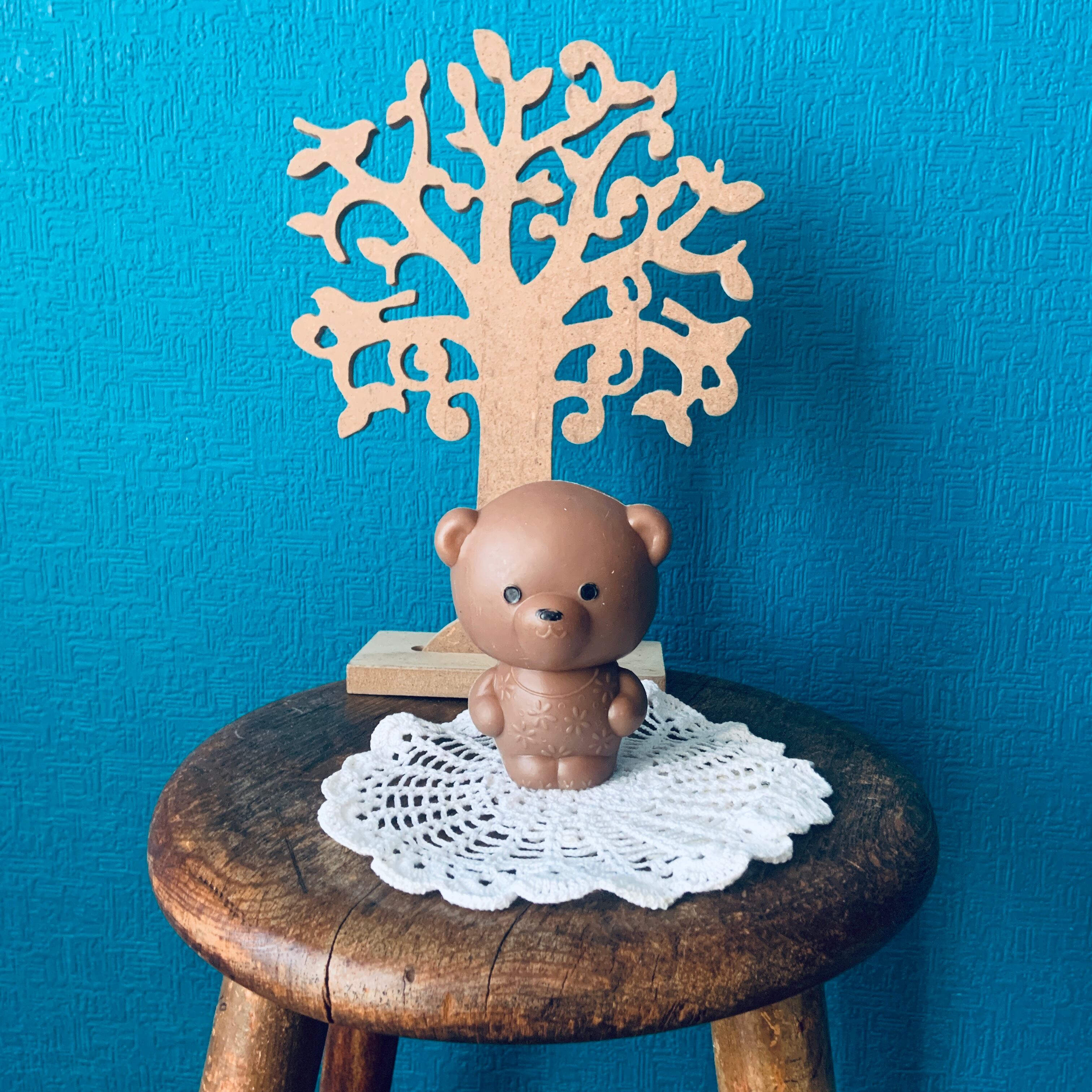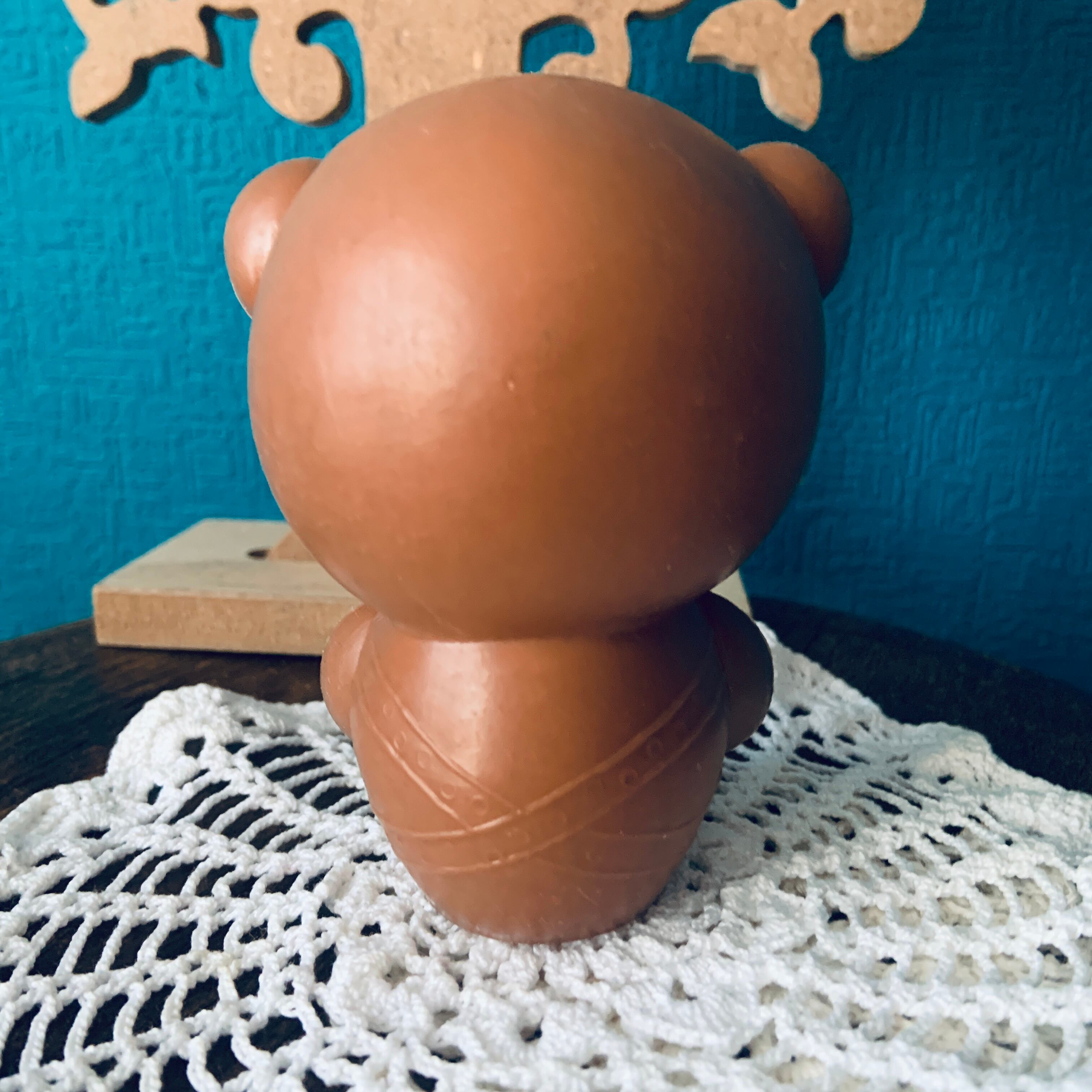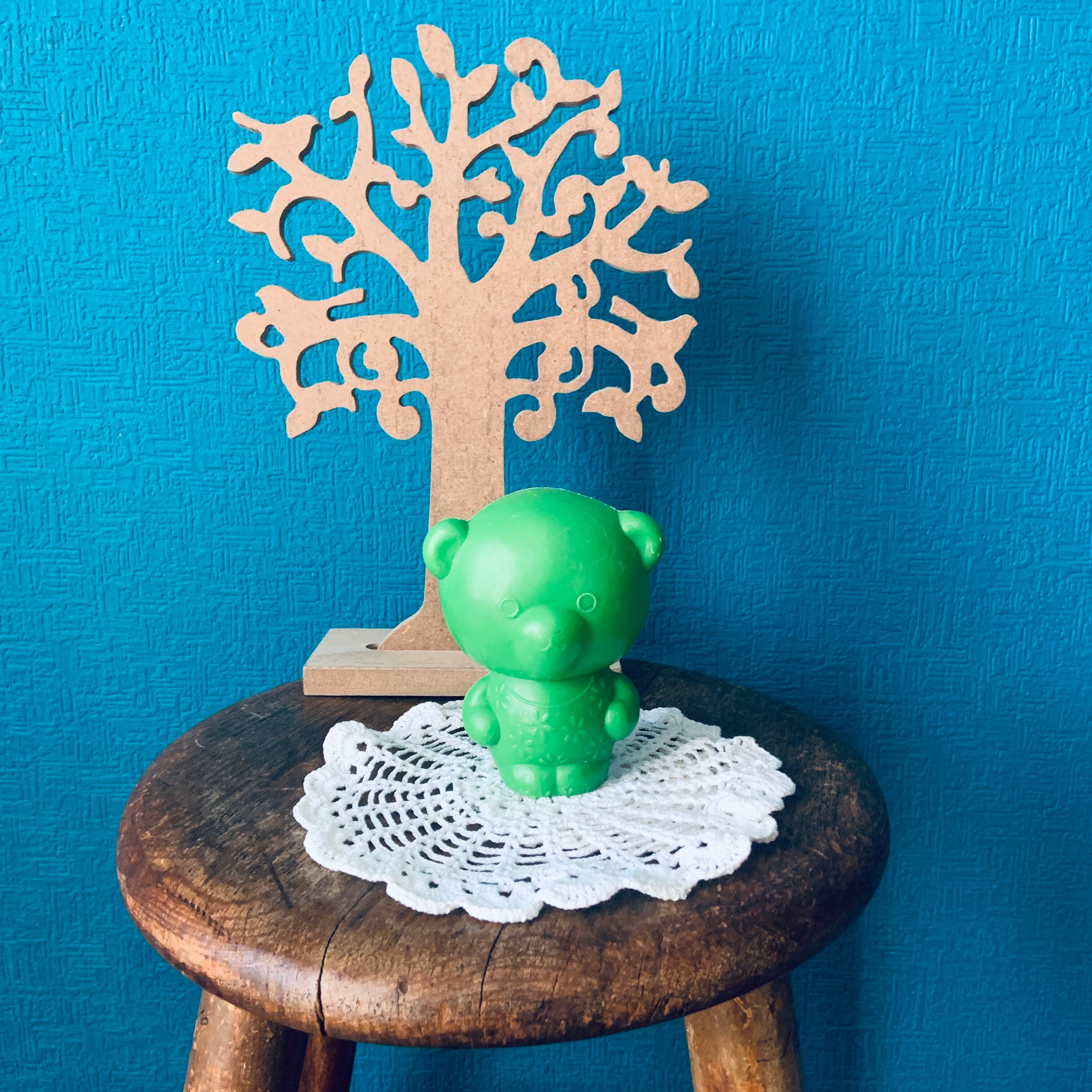 緑色と茶色のクマさん プラ人形 花柄の服着てる 旧ソ連 東欧雑貨 レトロ